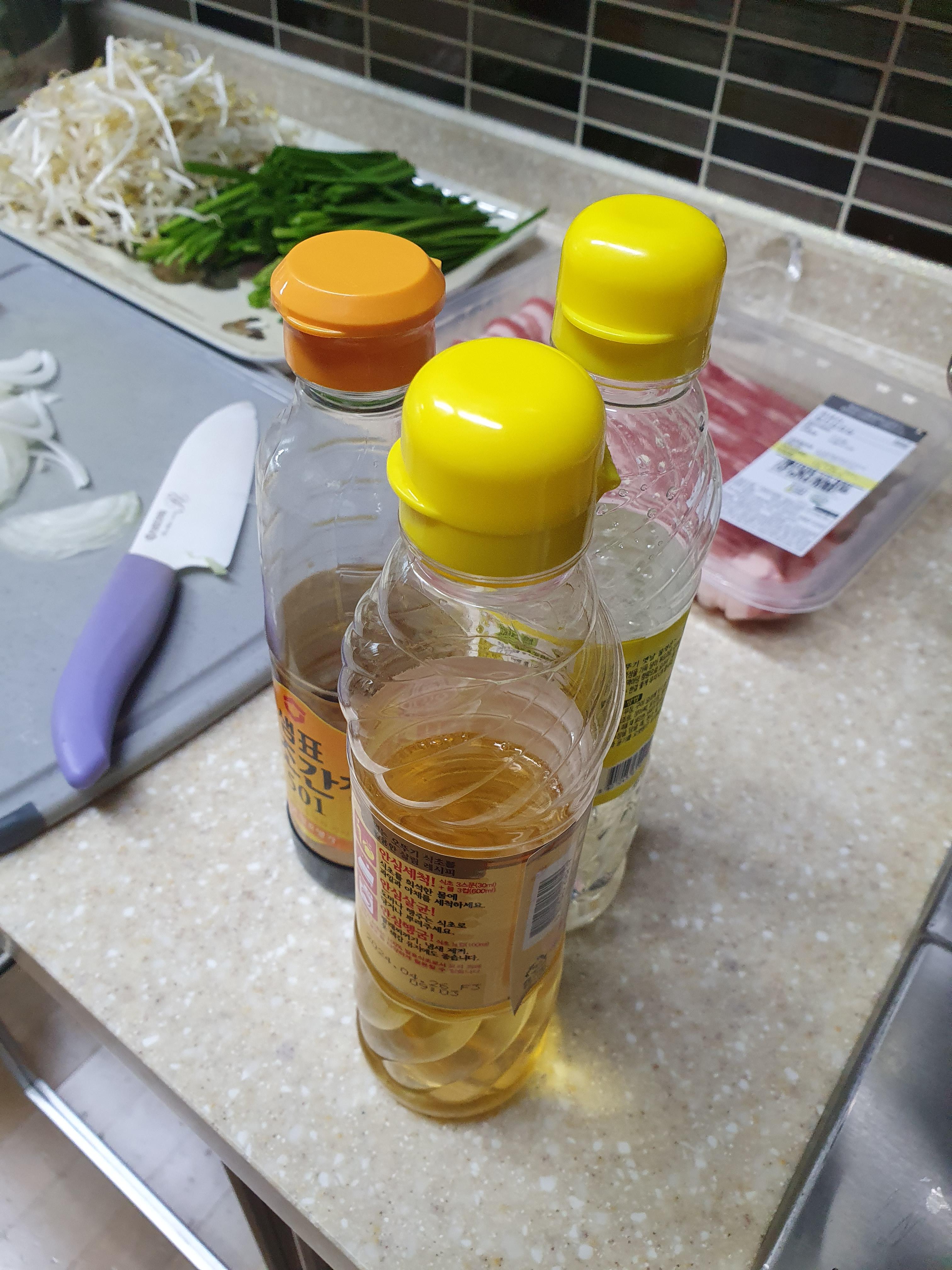 1접시에는 숙주나물과 부추를 덜어 놓구여~