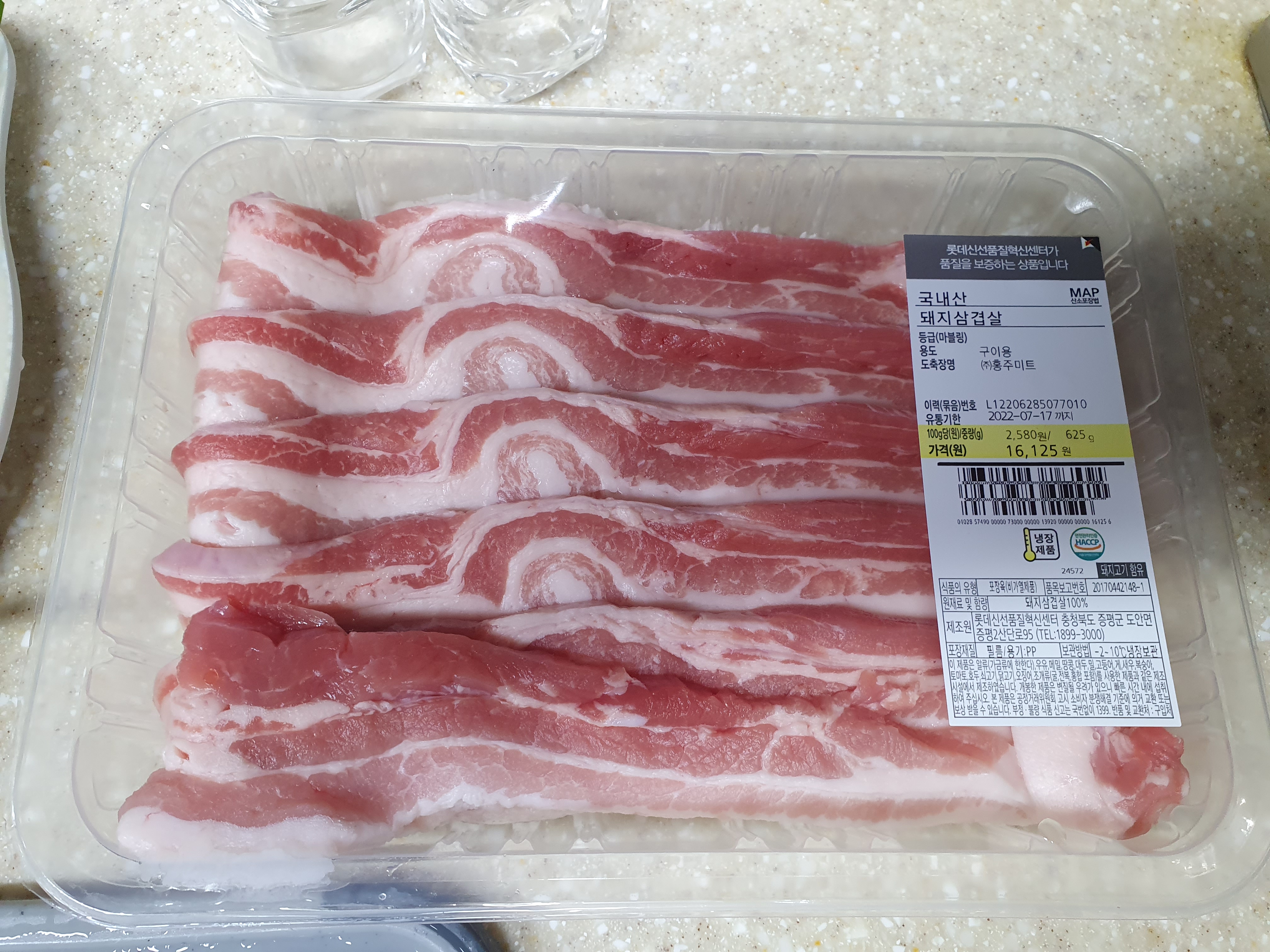 고기는 통 삼겹살이 아닌, 우리가 삼겹살 궈먹을때, 먹는 사이즈로 구매를 합니다.