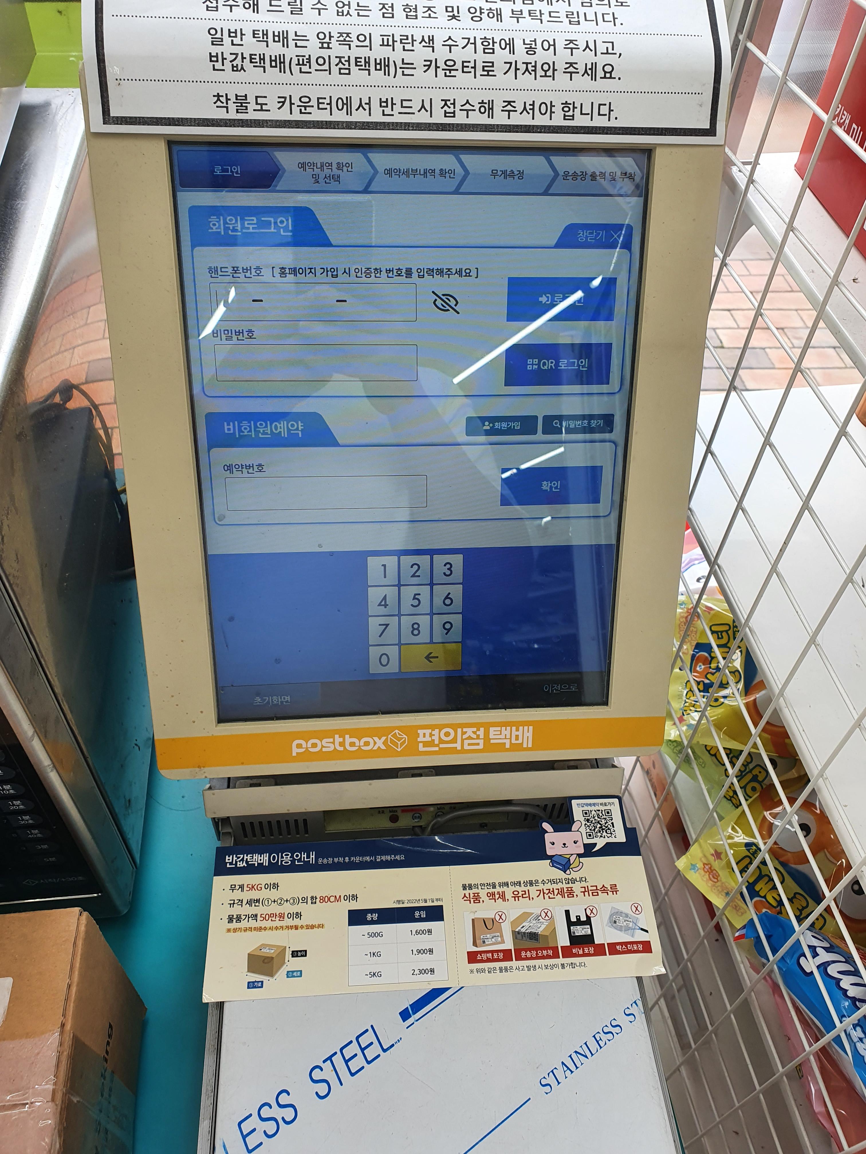 GS편의점에 도착을하면, 택배 기계 앞으로 갑니다.