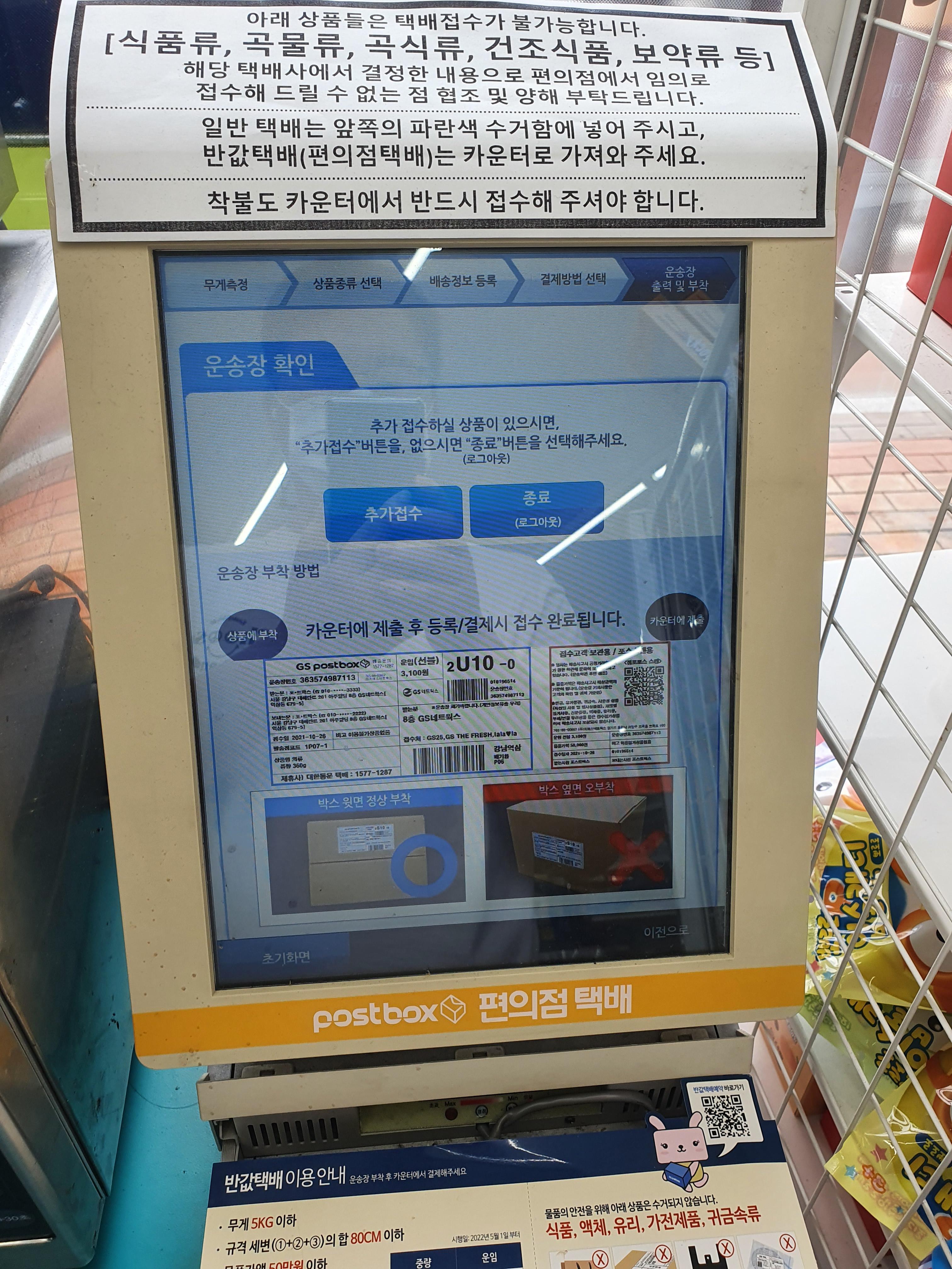 편의점에서 택배를 붙이시는 분들은 꼭 GS포스트박스 홈페이지에서 가입하시고 예약택배로 접수후 발송하시길 바랍니다.