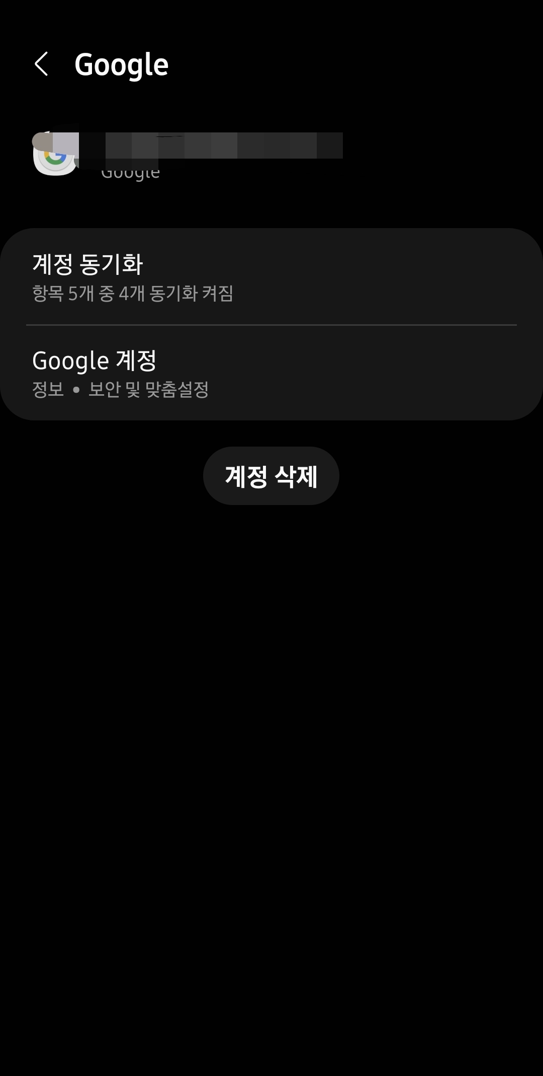 기존 구글 계정을 선택하고, 계정을 삭제하여 주세요.