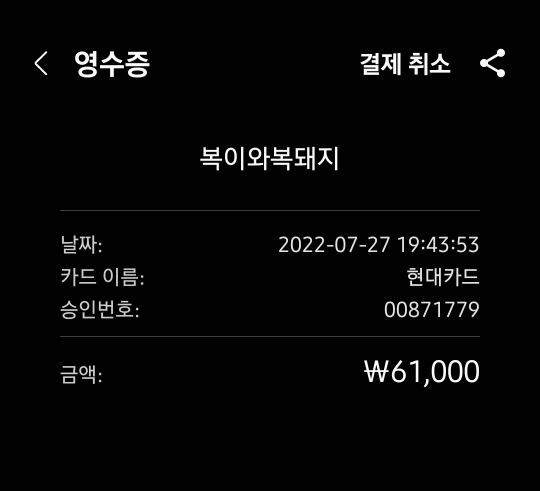 이렇게 많이 맛있게 먹었는데도.. 가격은 61000원 뿐이 나오지 않았네요.