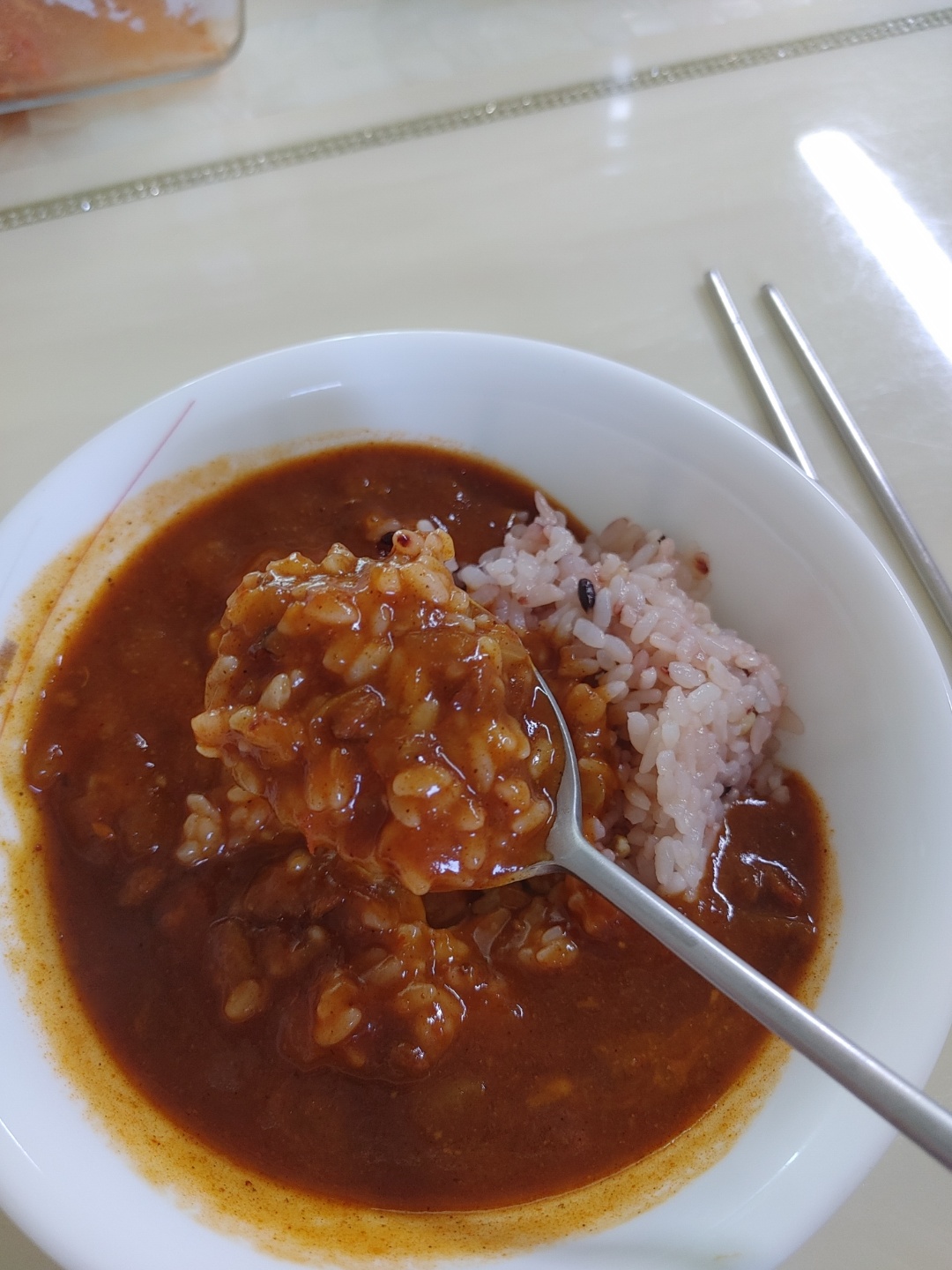 여기에 불닭볶음면의 향도 첨가 되어서 생각보다 굉장히 매운 맛을 내는 카레였다.