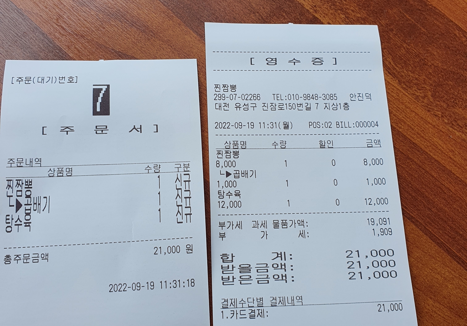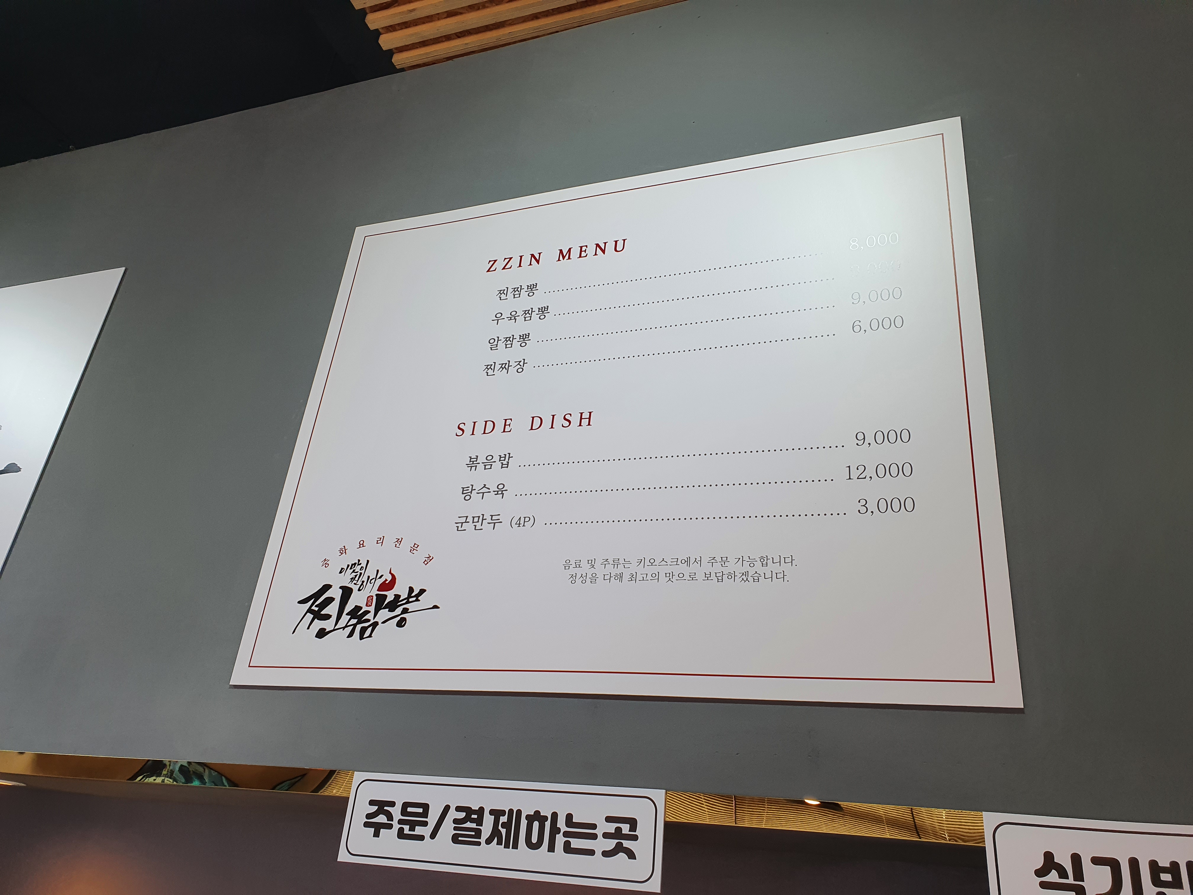 찐짬뽕 곱배기 1개 8천원 + 1천원 = 9천원
