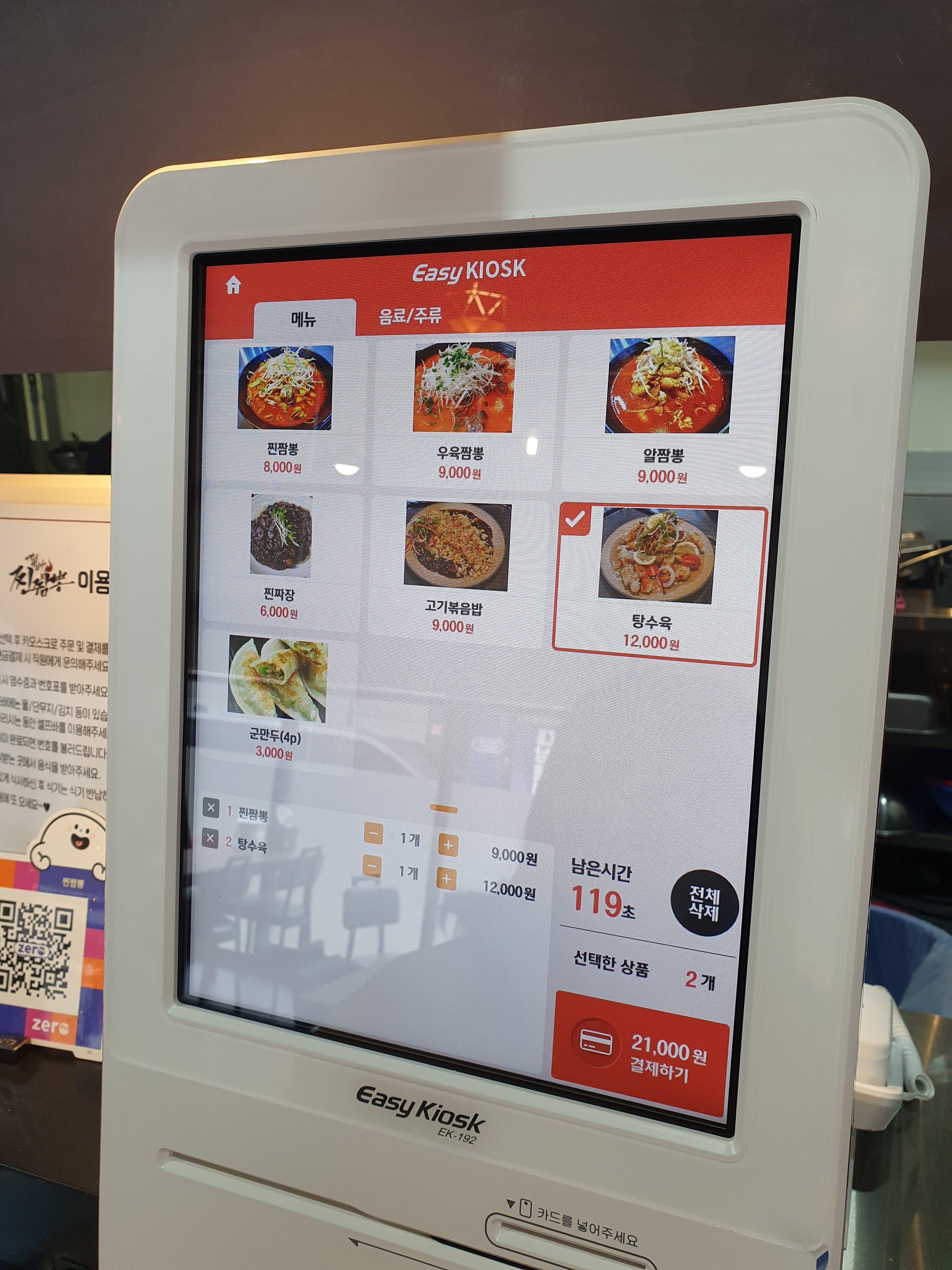 메뉴판 아래 키오스크가 눈에 띄입니다. 이걸 보고 주문을 하면 됩니다.