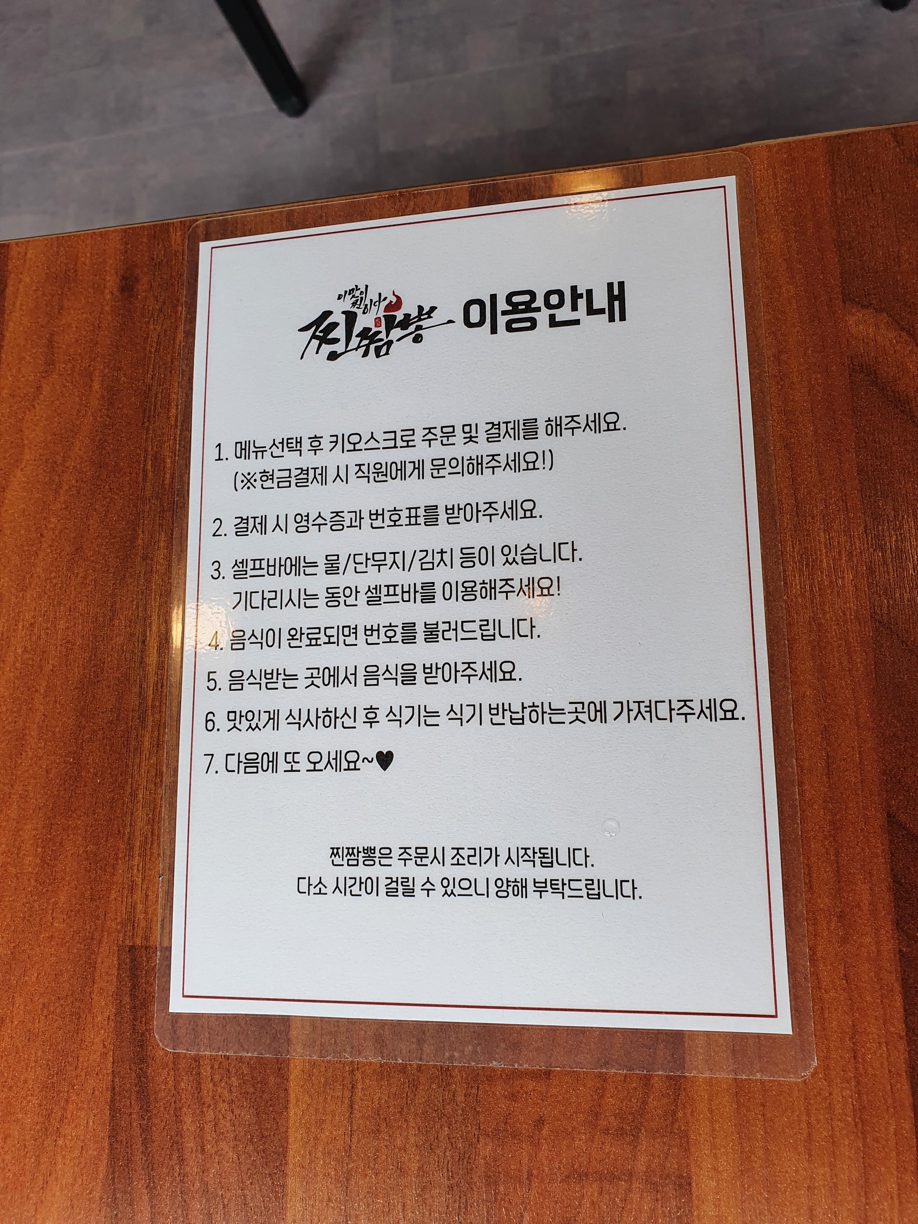 원내동 찐짬뽕의 이용방법은 테이블에 이용안내서가 있기 때문에, 그걸보고 그대로 하시면됩니다.