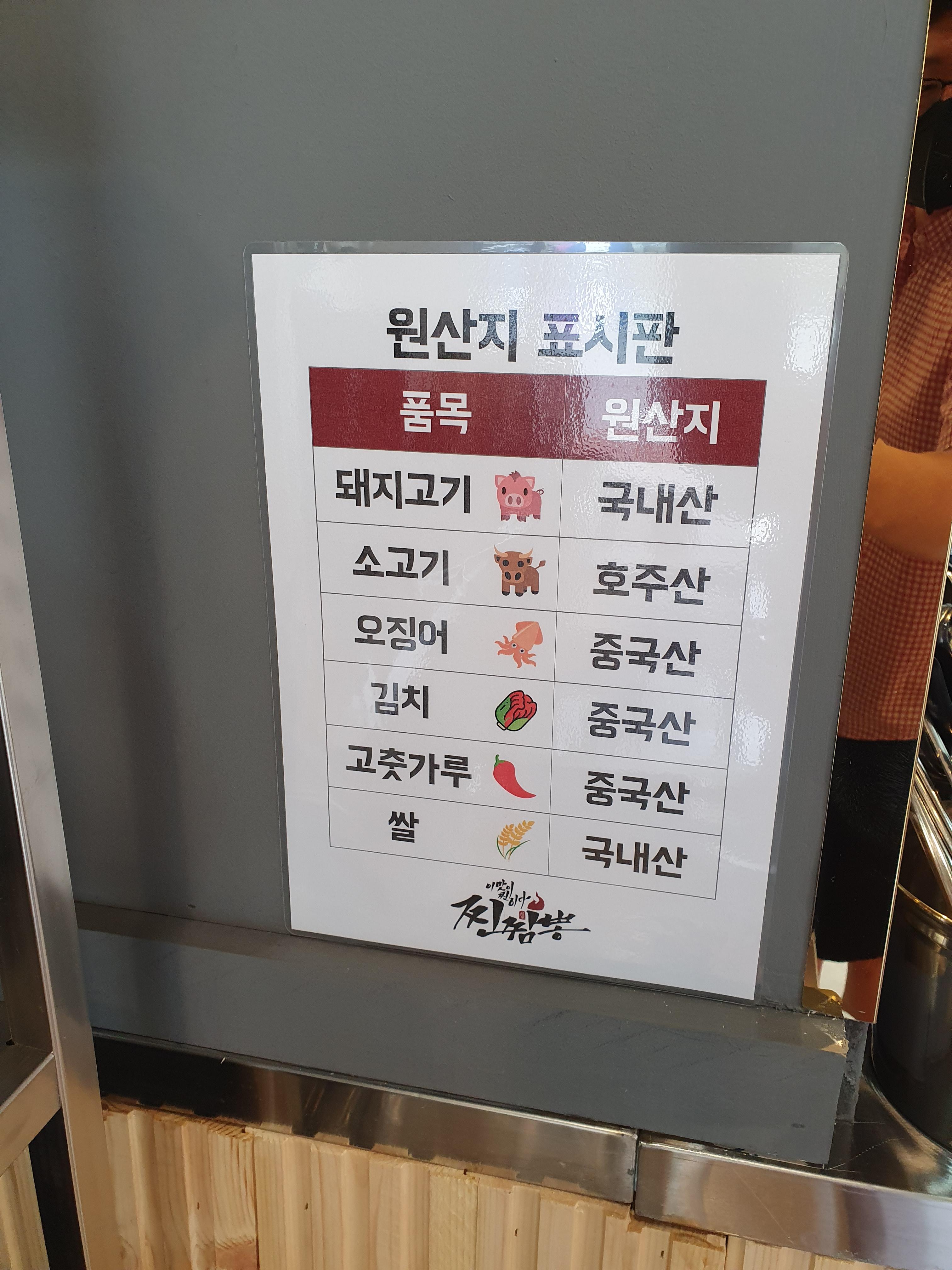 원내동 찐짬뽕 식재료 원산지 표시는 아래 사진을 참고하시길 바랍니다.