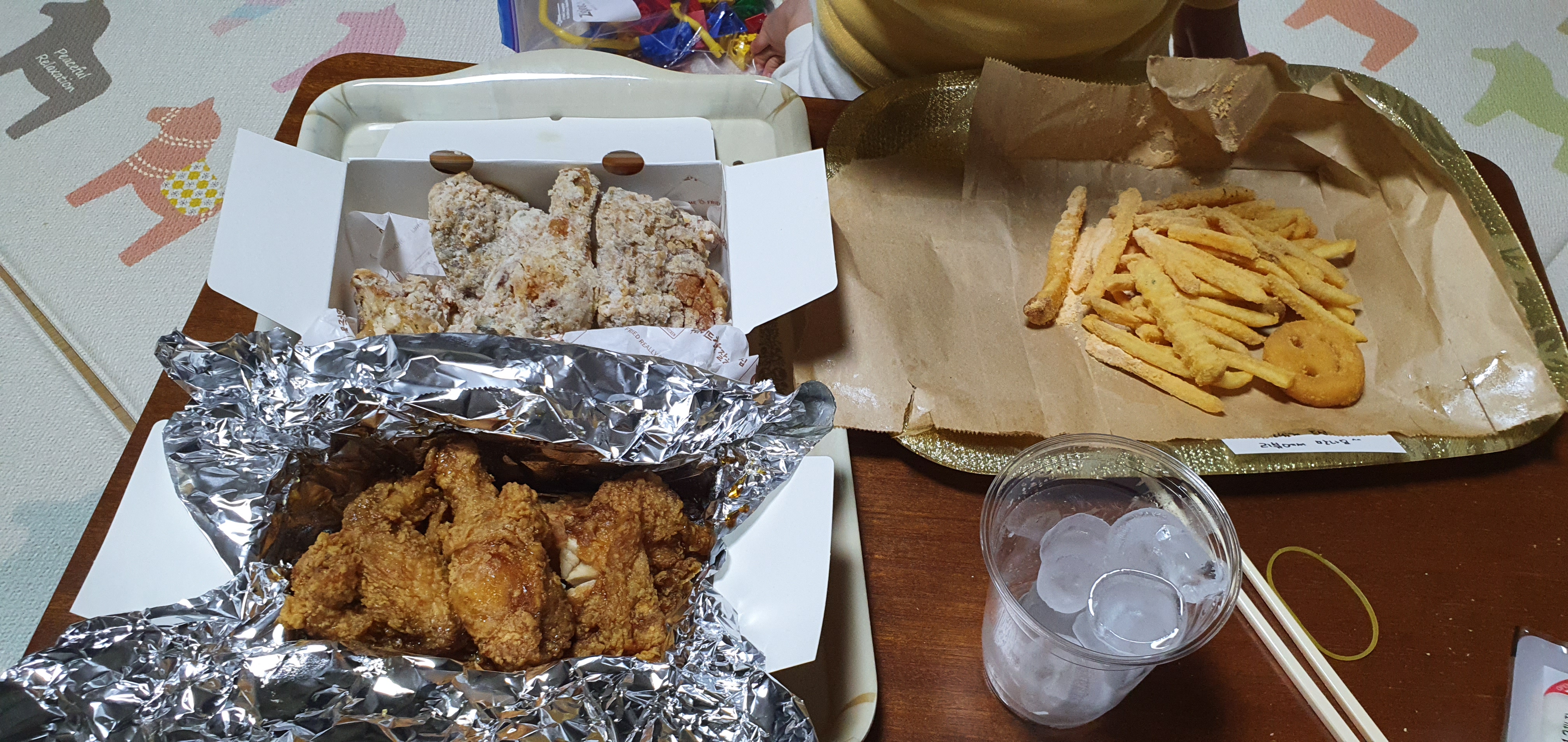 배달이 빨리 와서 그런지 감튀가 뜨겁다. 아이들에게 식혀서 먹으라고 전하고..