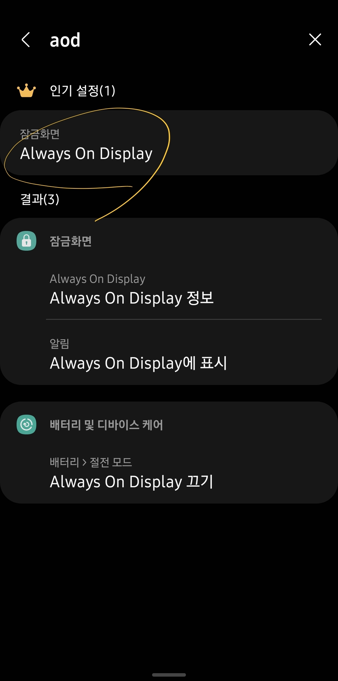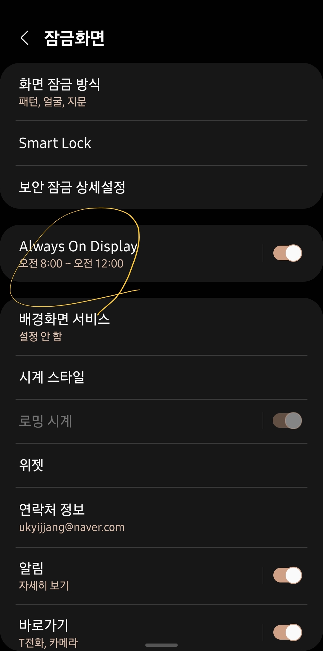 이렇게하면, aod의 밝기조절을 할수가 있습니다.
