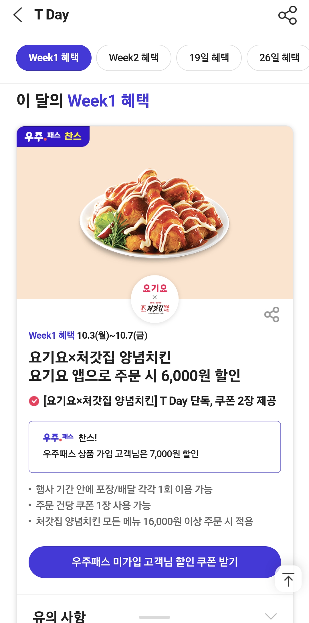 T day 치킨 쿠폰 등록하는 법