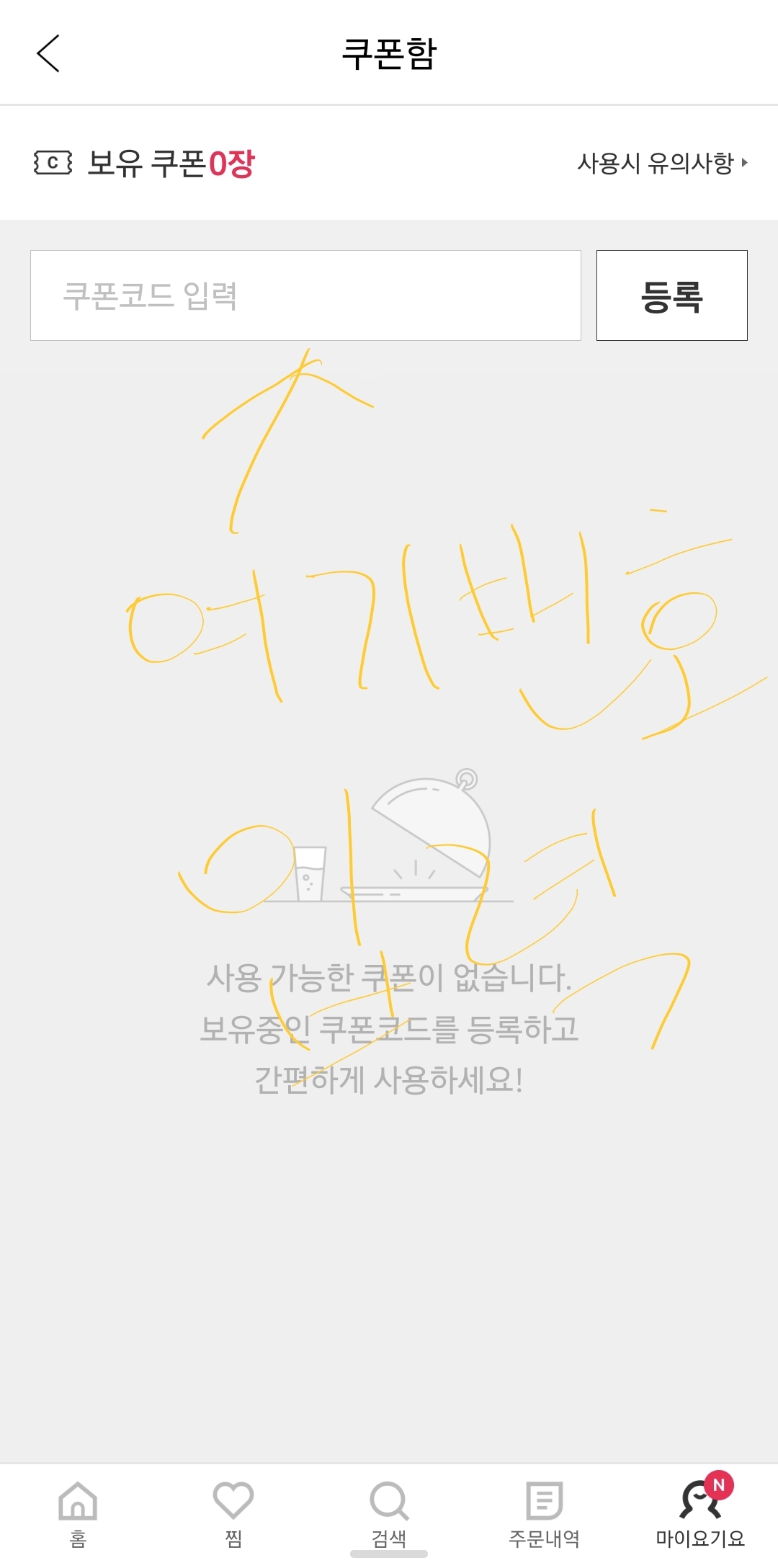 4. 쿠폰함에 복사한 쿠폰 코드를 입력후 등록을 선택한다.