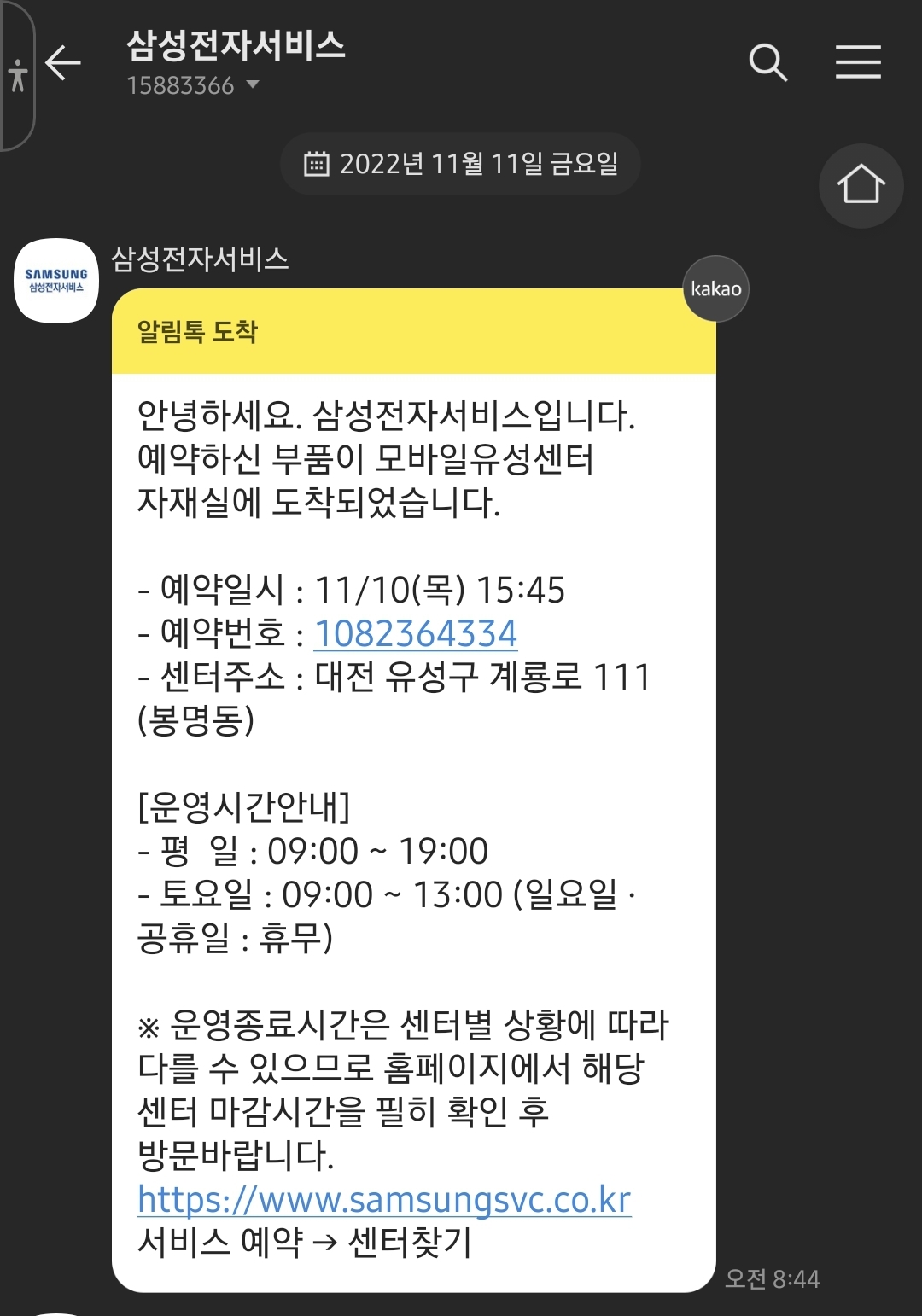 저는 대전 유성점 서비스센터로 요청하였습니다.