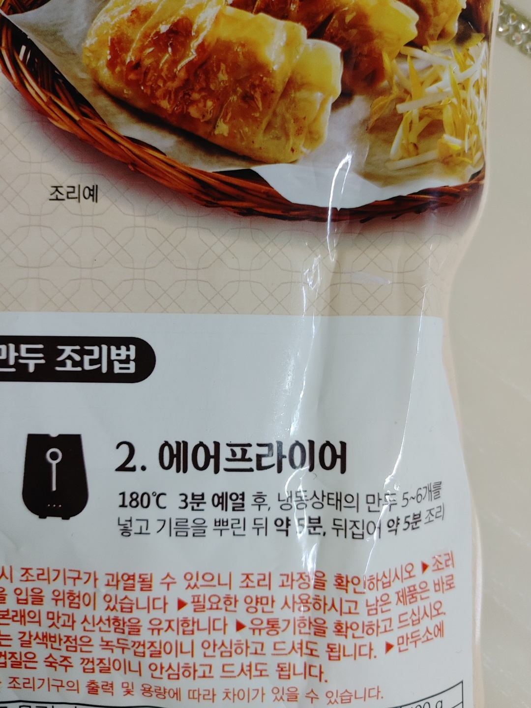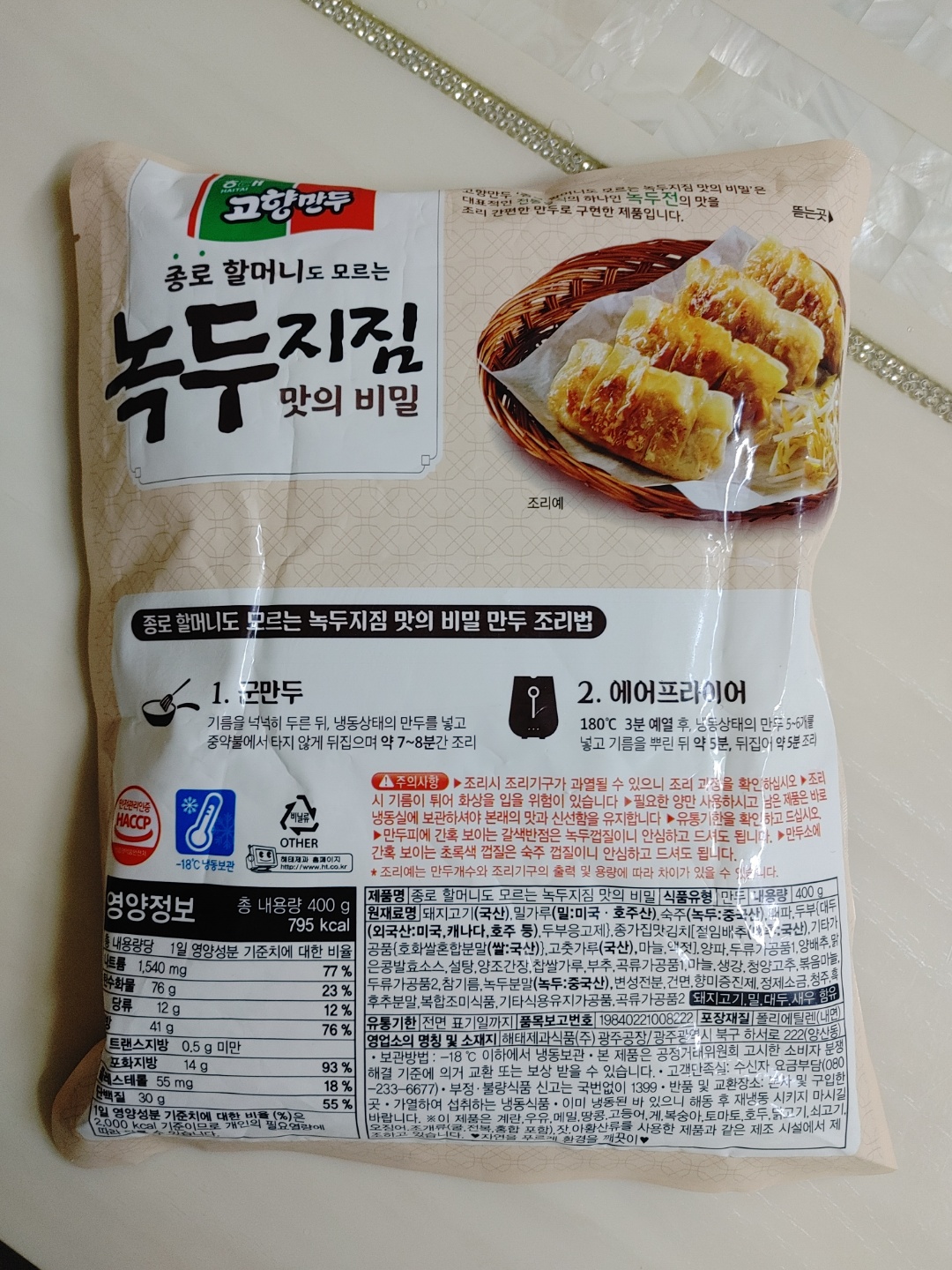 하지만, 전 녹두지짐만두를 에어 프라이어에 넣고 구워서 먹어보려합니다.