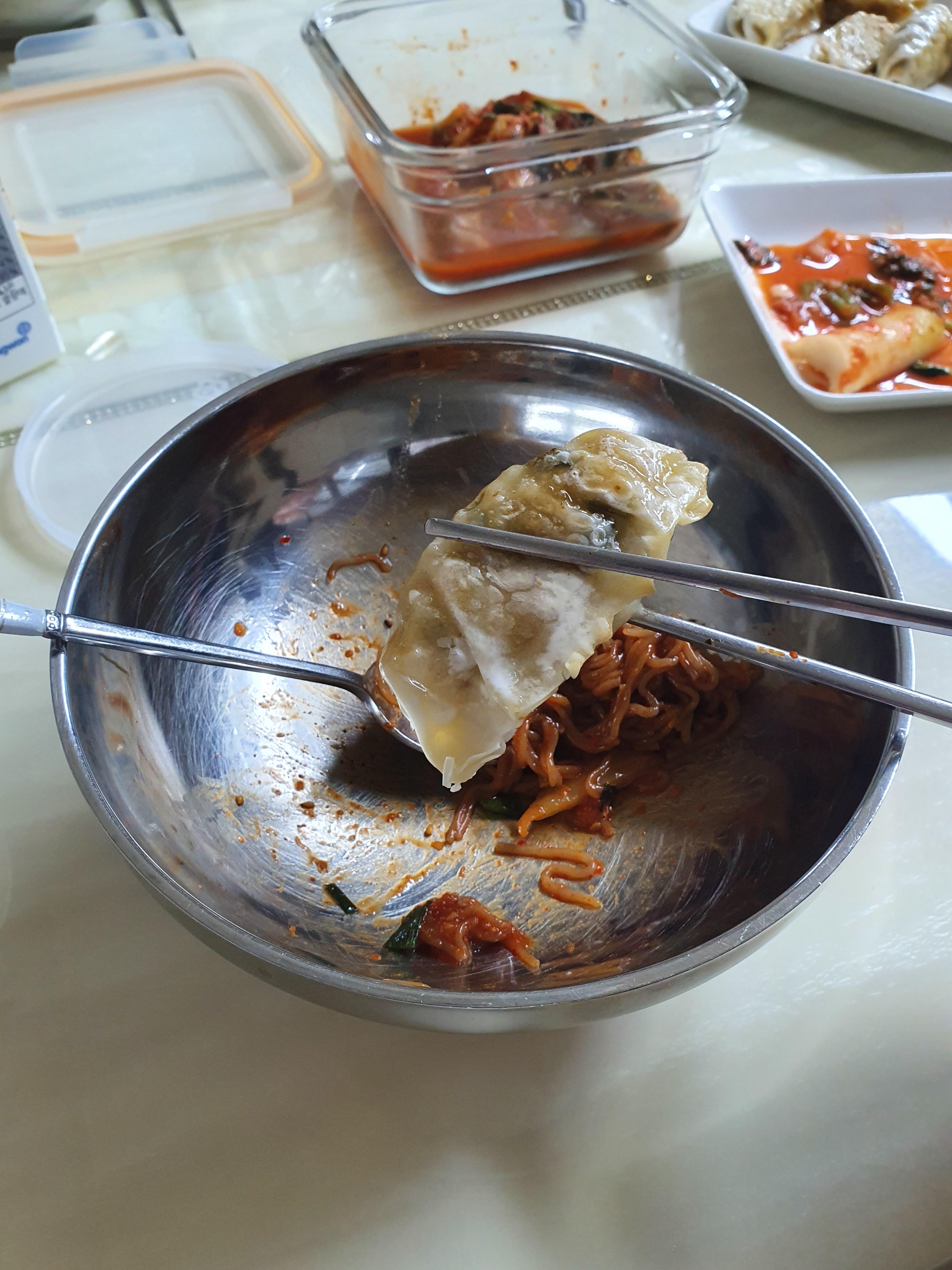생각보다 맛잇는 녹두지짐만두가 완성되었습니다.