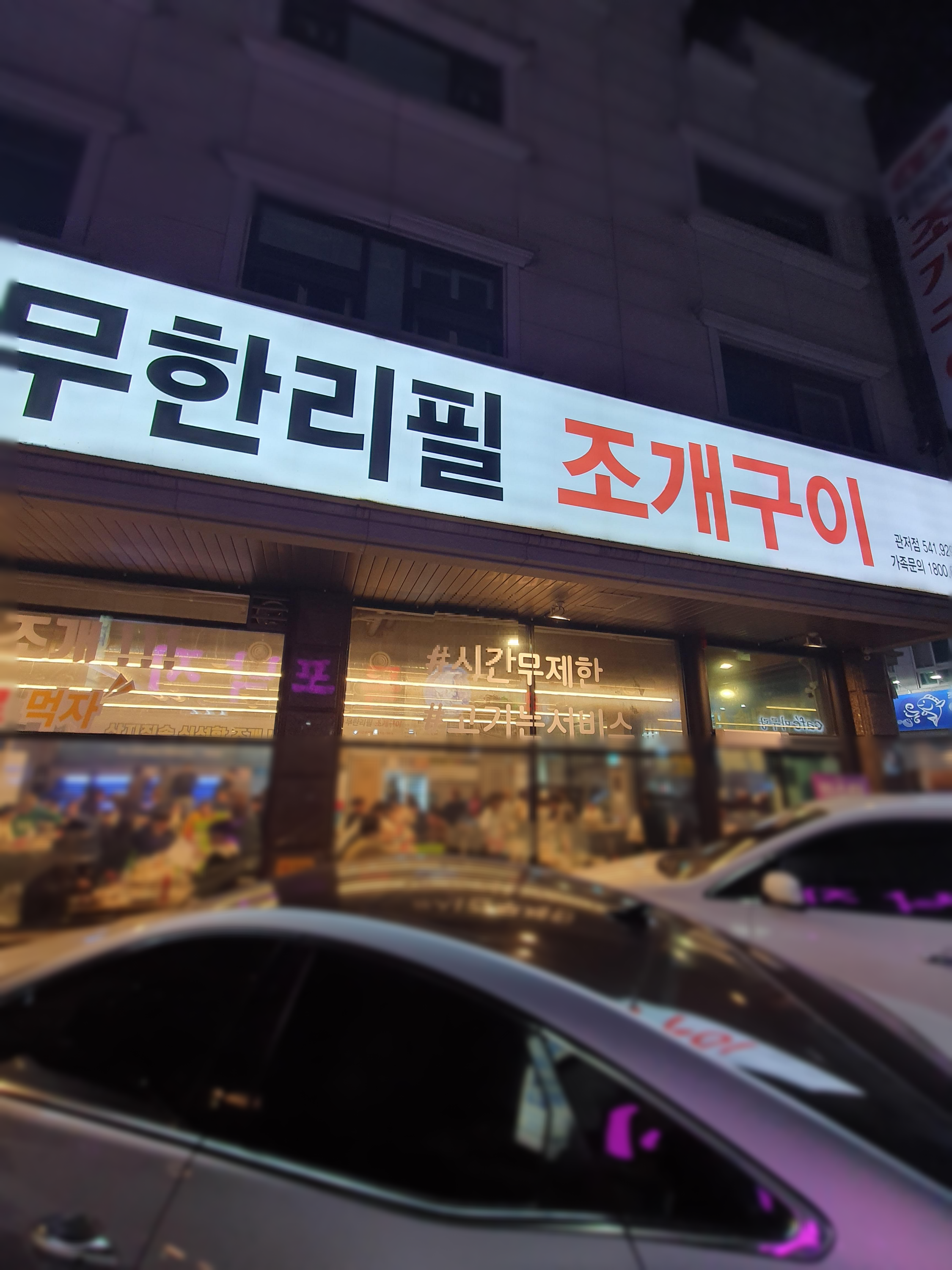 상호는 그냥 무한리필 조개구이라고 하얀색 간판으로 되어 있습니다.