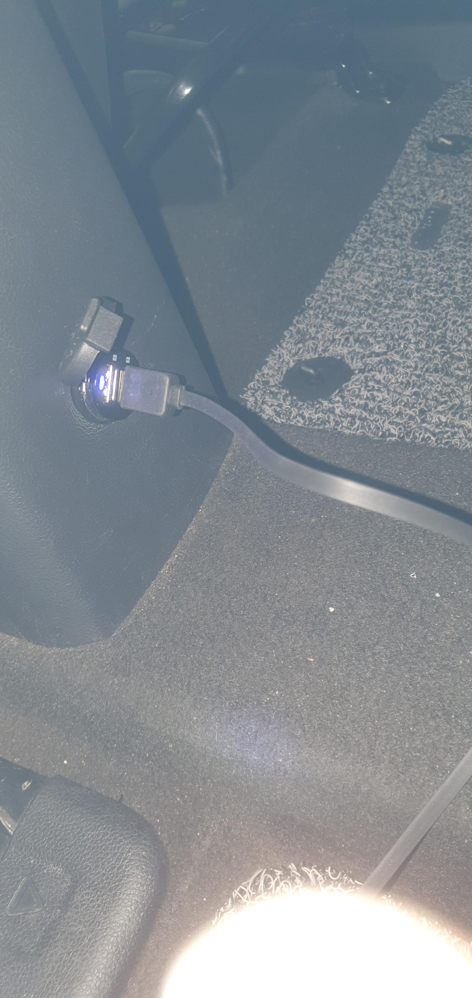 이제 전에 시가잭에 사용 하지 못했던 스마트폰 충전기를 새로 설치한 파워소켓을 꽂아 봅니다.