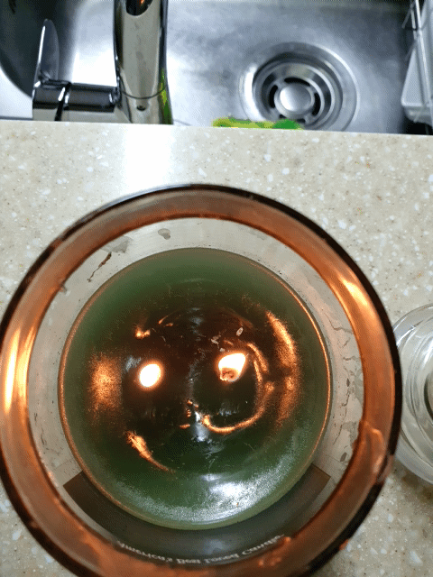 양키캔들의 바닥면을 보면, 어제 버렸던 심지에서 나오는 까만색 재들이 눈에 보입니다.