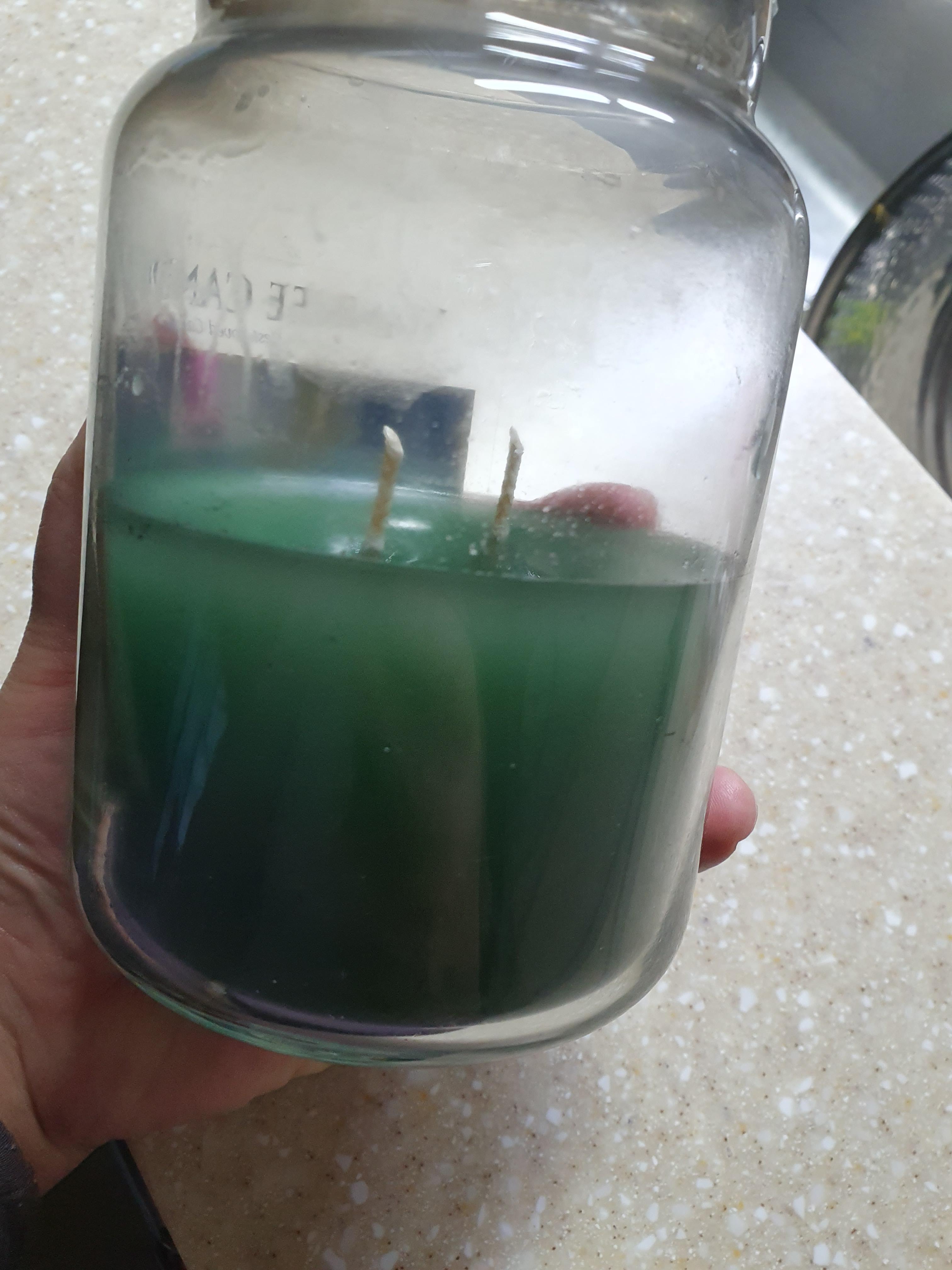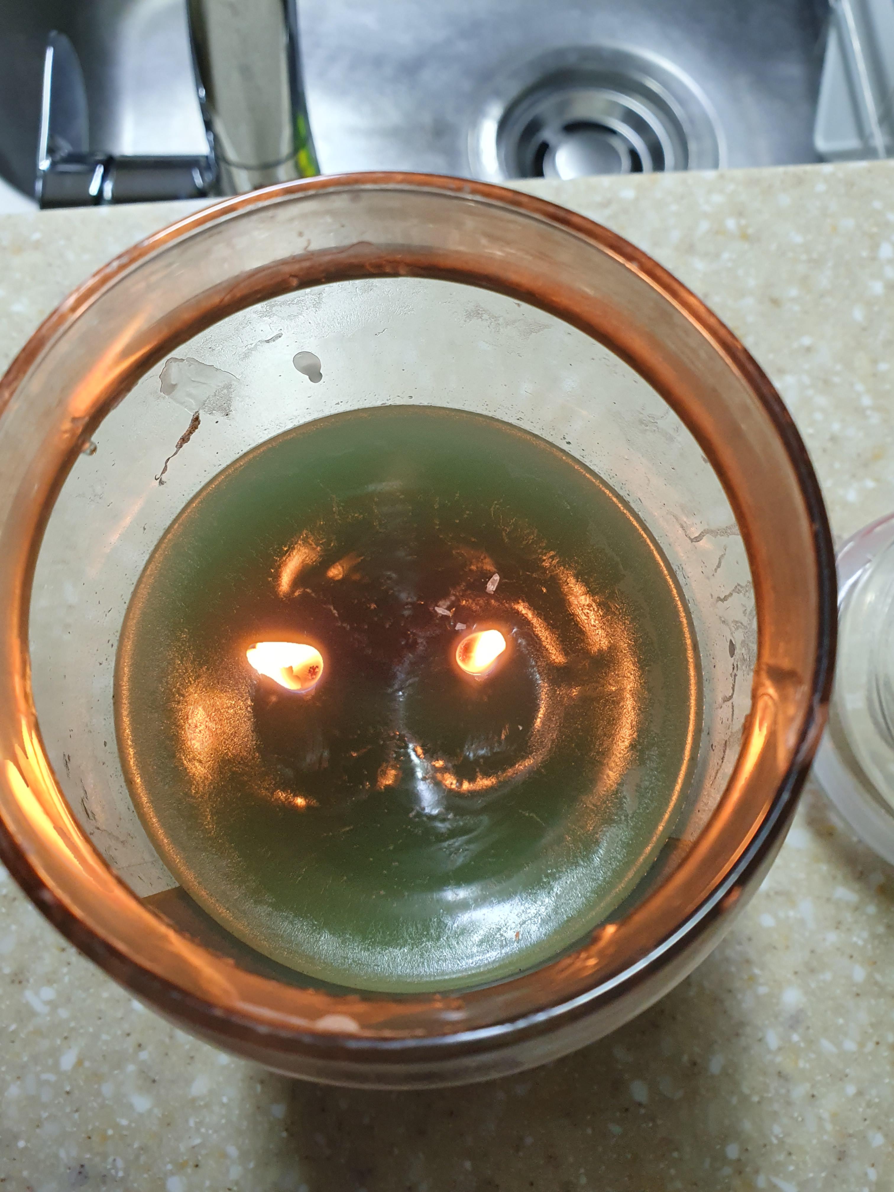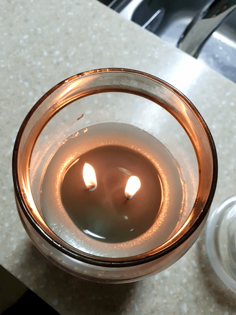 6. 다음날 아침에 확인을 하면, 초심지 2개가 양키캔들에 잘 박혀 있는것을 확인할수 있습니다. 끝.