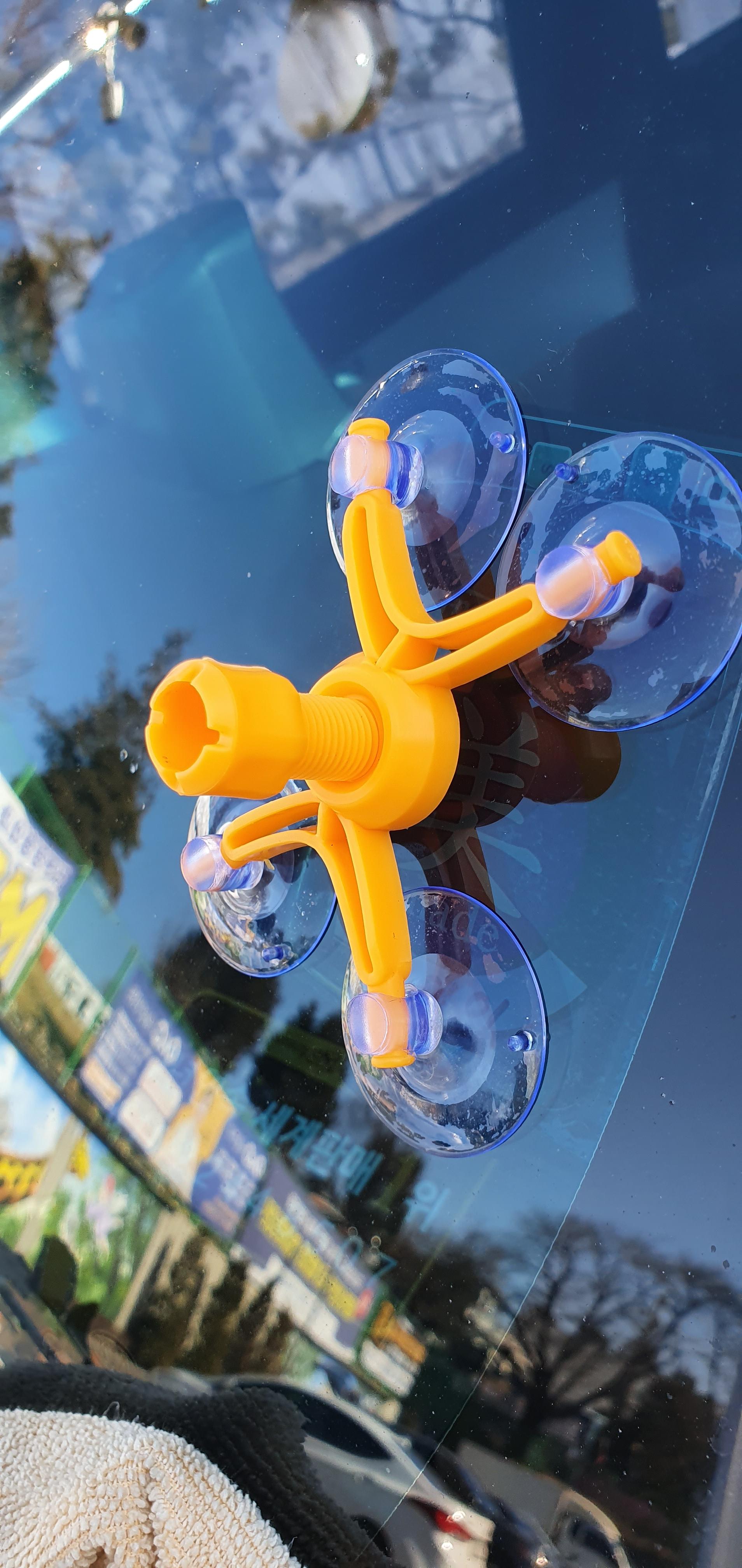 3. 아래 사진처럼 가운데 구멍에 돌빵난 부위가 가운데 오도록 흡착판으로 붙여준다.