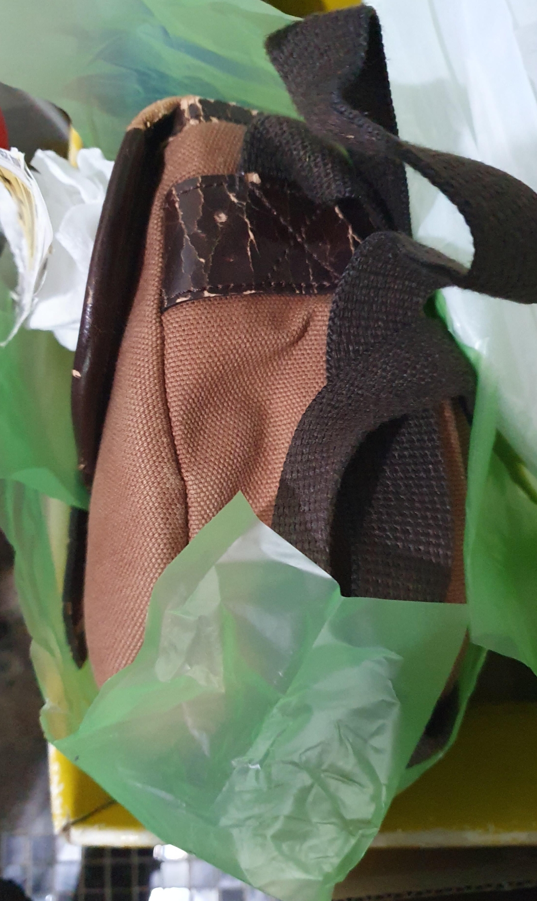 그냥 누가봐도 갈색 천으로 만든 작은 카메라 가방이며,