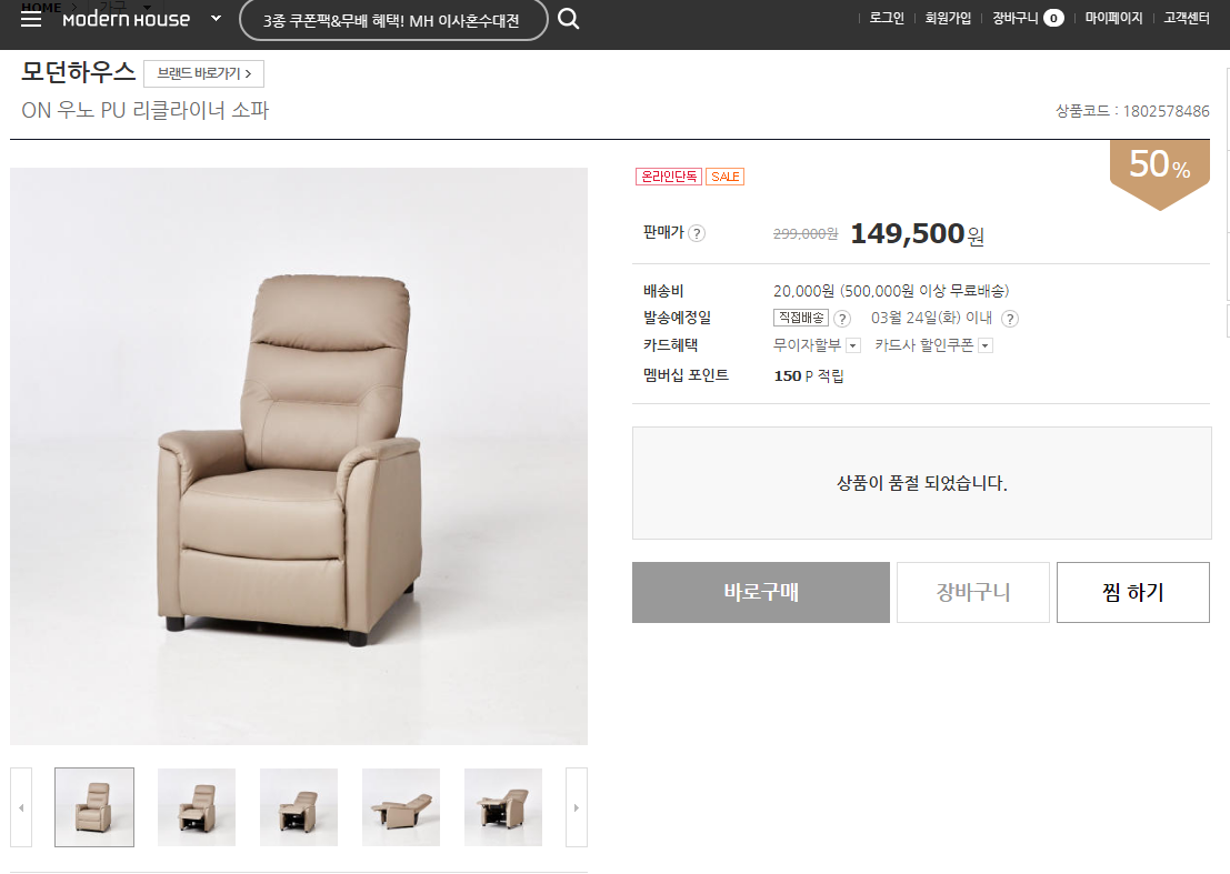 전 모던하우스? 완전 소파 브랜드도 아니라서 쌀줄알았는데....