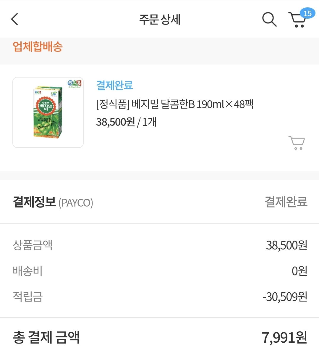 3만원 동원몰 밴드플러스 적립금을 받아서, 실제 결제한 금액은 7991원만 결제하였네요.