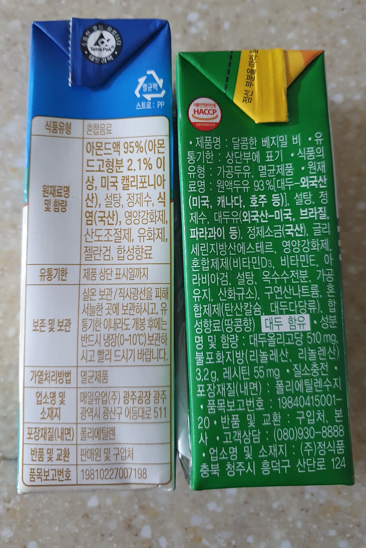 아몬드브리즈 베지밀 두유 비교