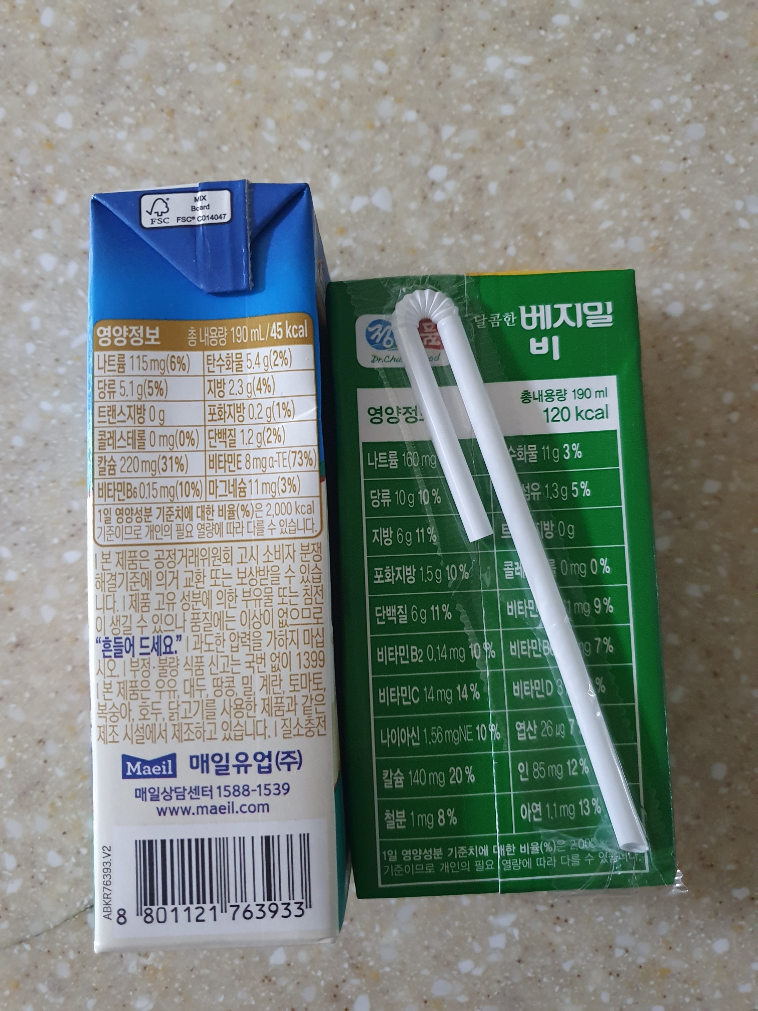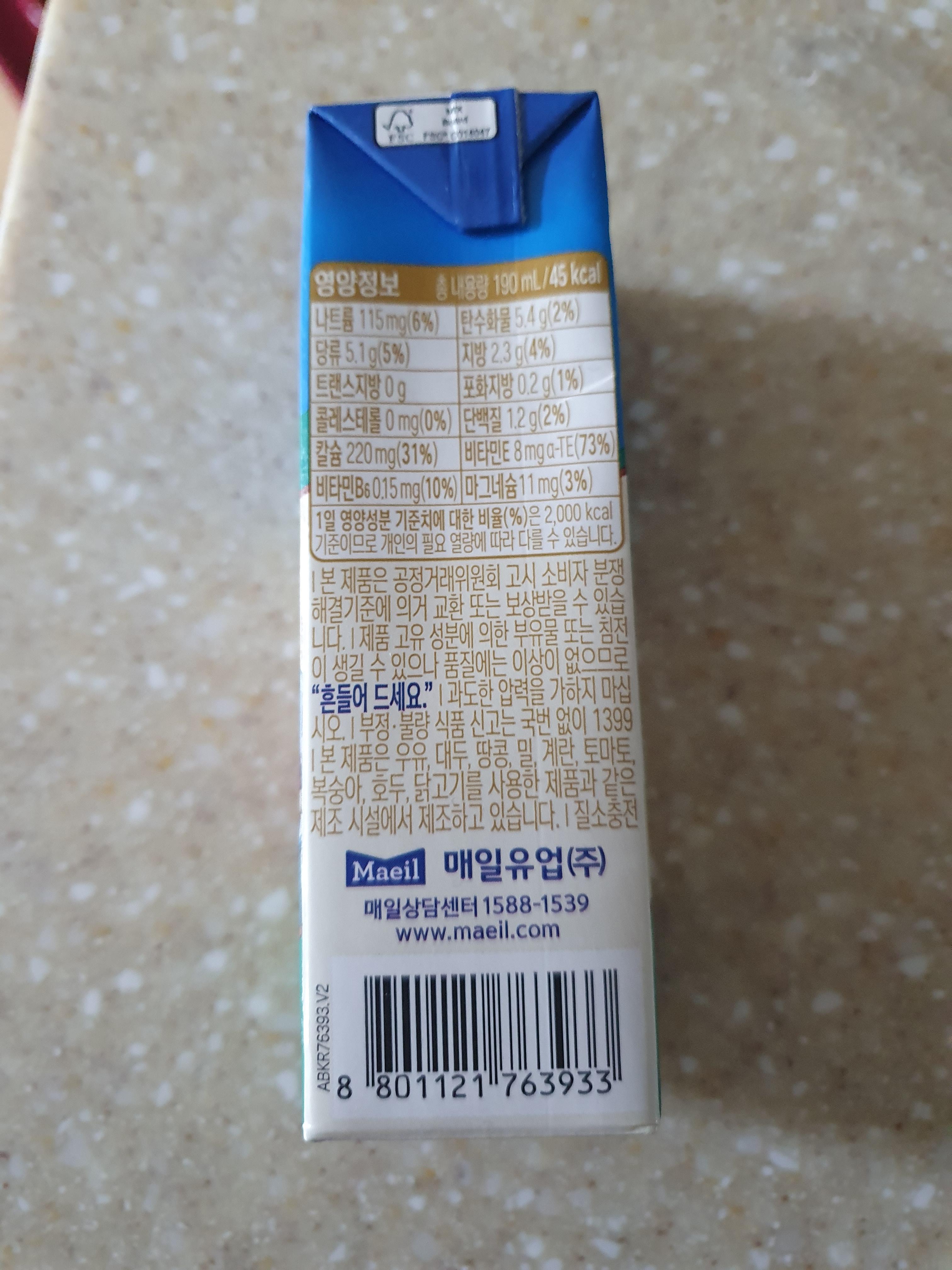 집에 최근에 구매한 정식품 달콤한 두유 190 ml랑 비교해 보겠습니다.