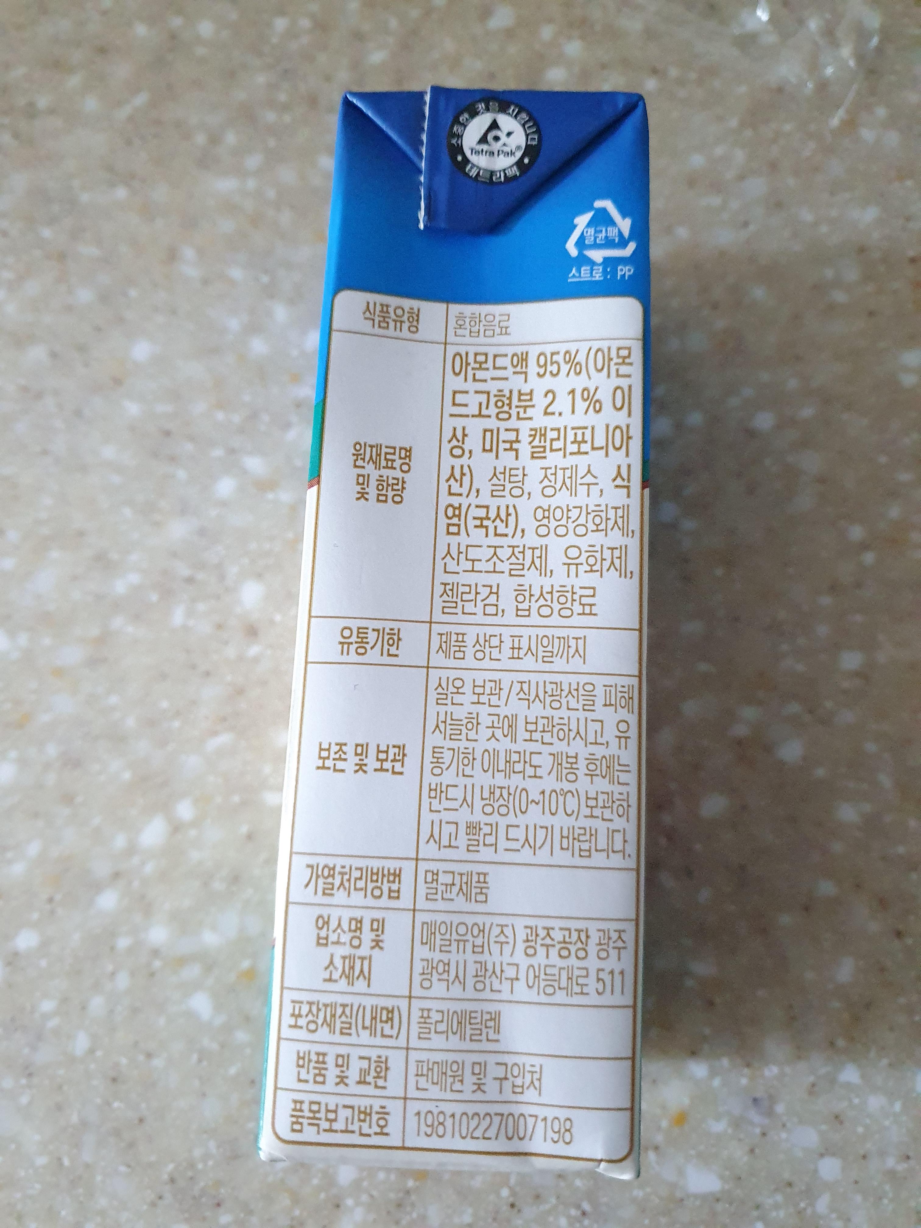 아몬드 브리즈 음료는 190ml 가 들어 있는