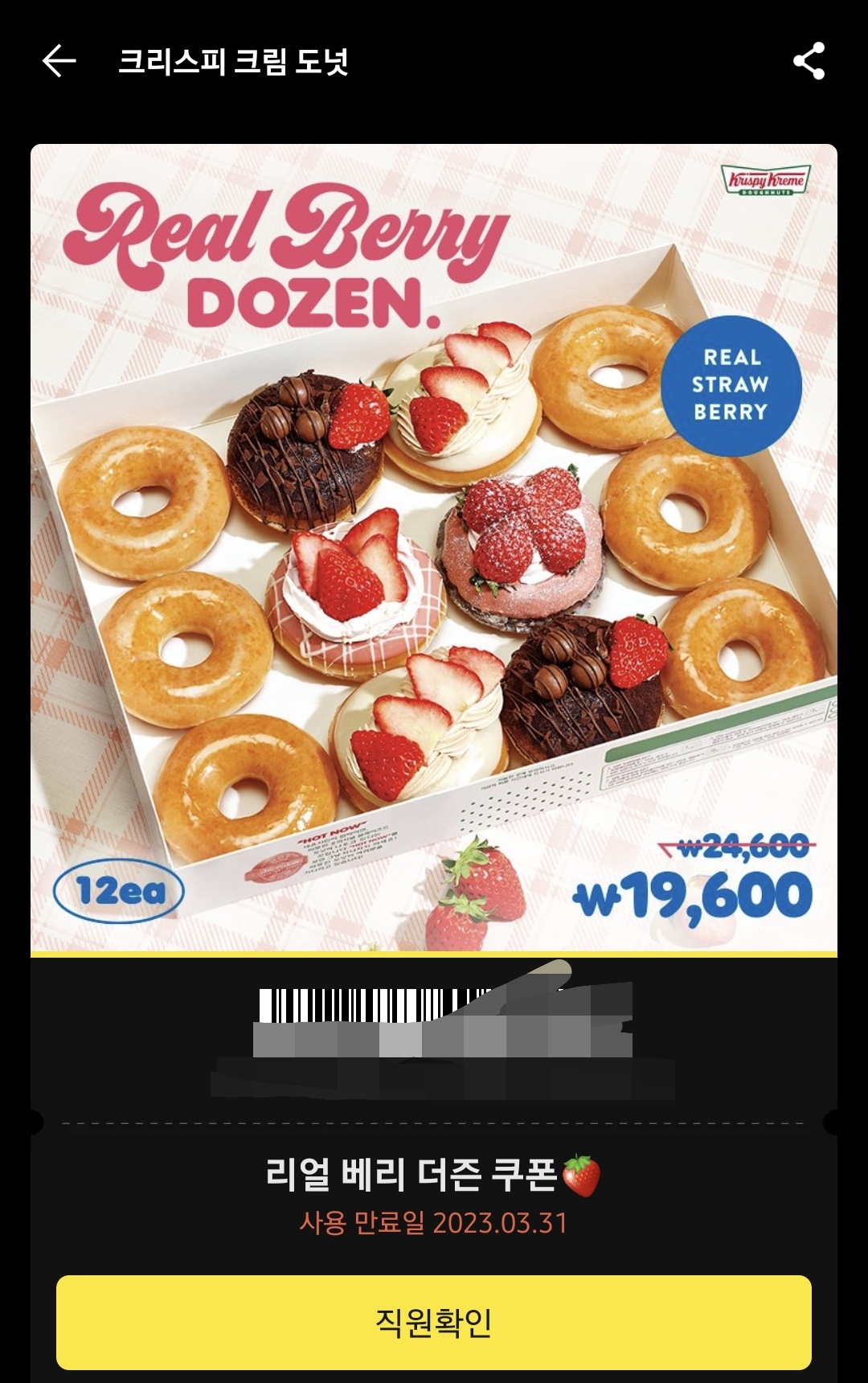 바로 리얼 베리 더즌 이라는 크리스피 크림 도넛 구매 쿠폰을 보내줬거든요.