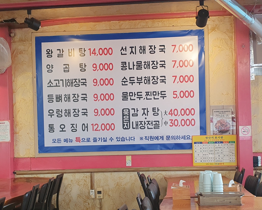 갈비탕도 있고, 곱창탕, 선지해장국, 콩나물해장국, 없는게 없어요!