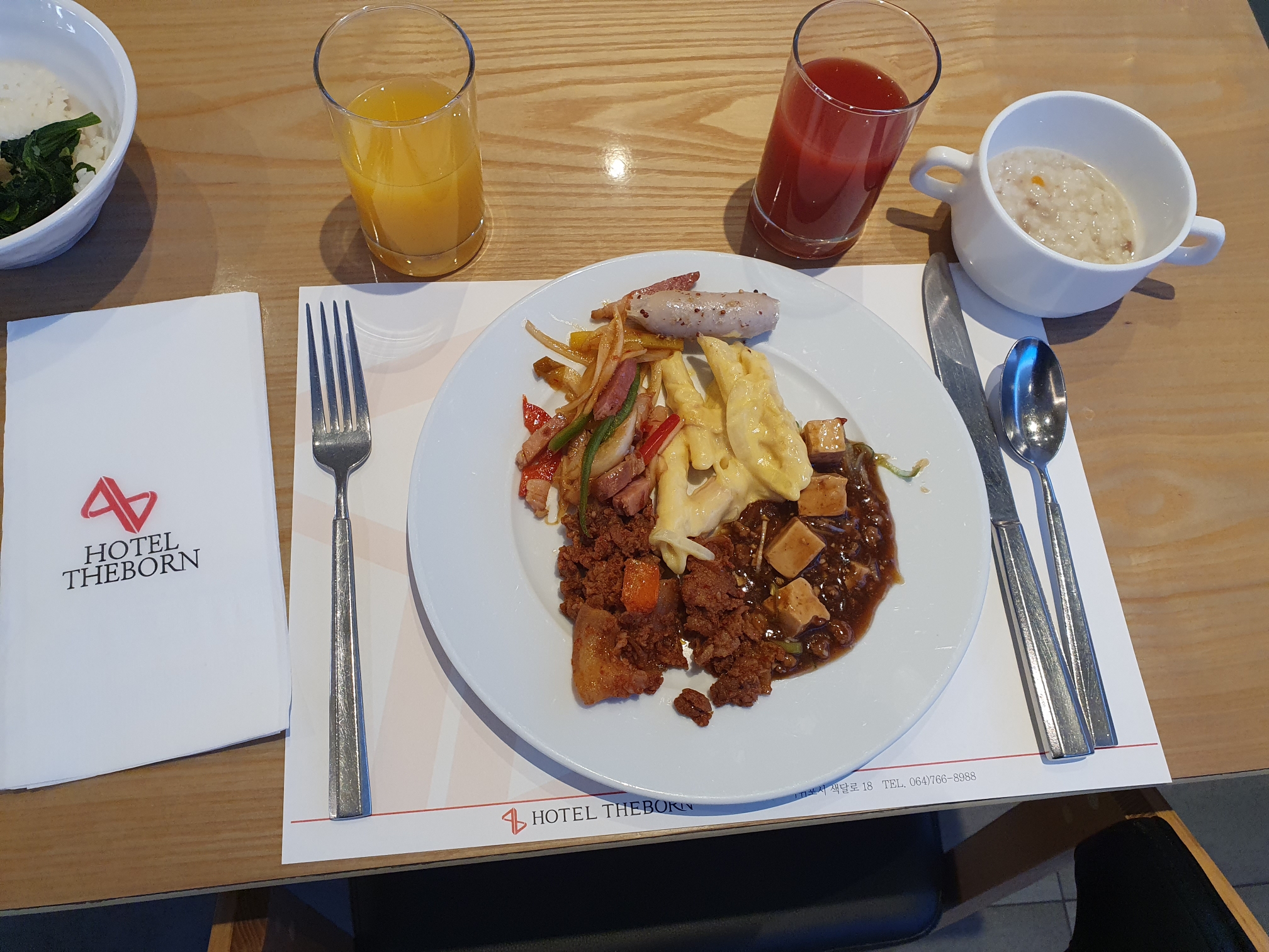 더본 호텔에서 첫번째, 음식을 가지고 왔습니다.