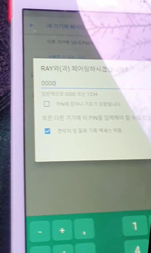 5. 폰등록을누르면 기기명 : ray 와 인증번호: 0000가 액정에 보일껍니다.