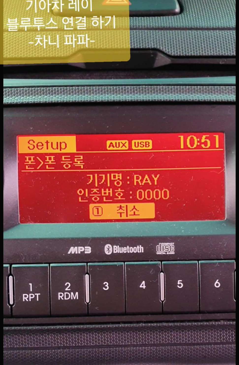 기아차 레이에 블루투스 2딘짜리 블루투스 오디오가 설치되어 있습니다.
