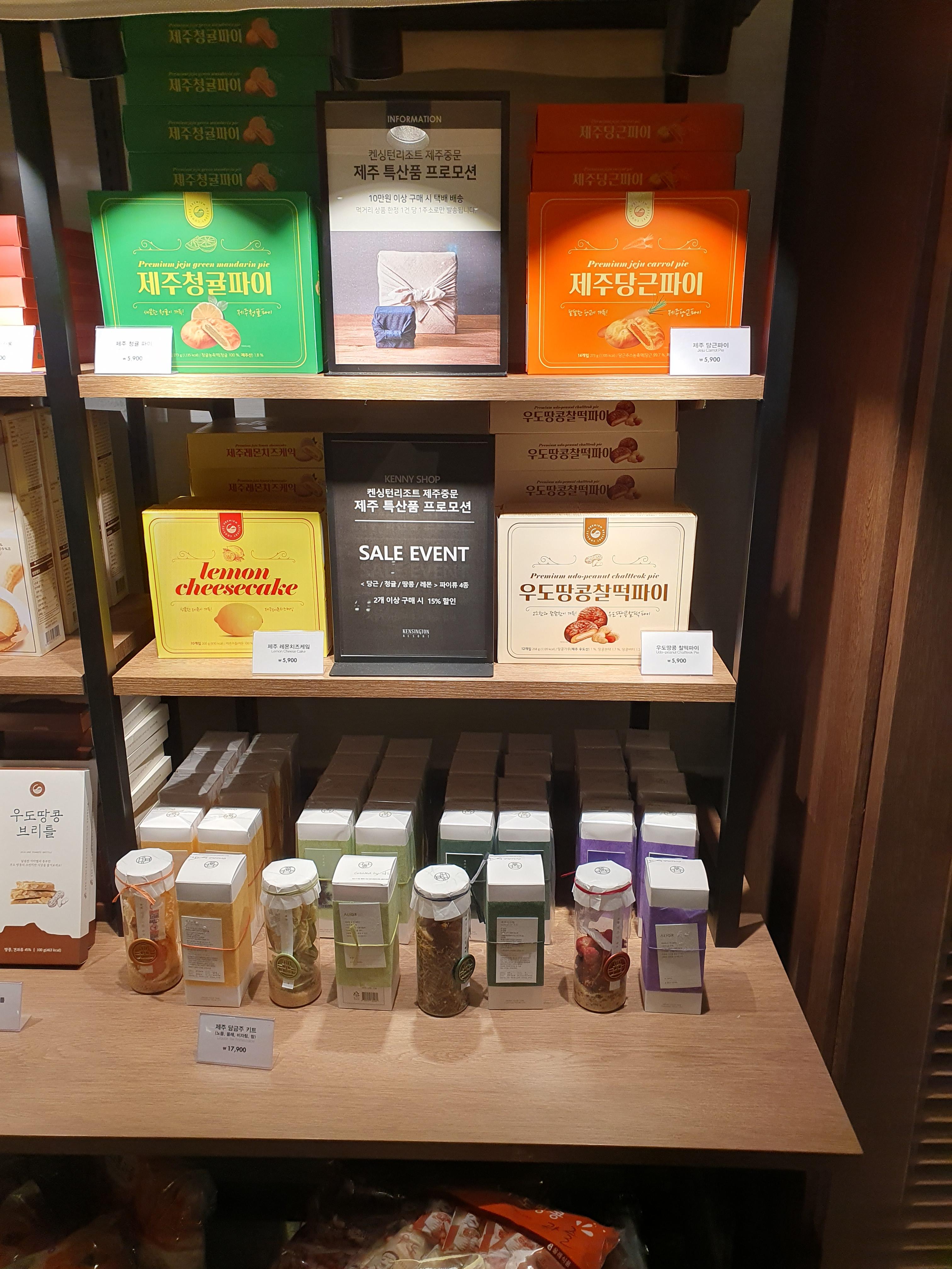 1층 프론트 앞에 제주도에사만 판매하는 특산품이 있어서,