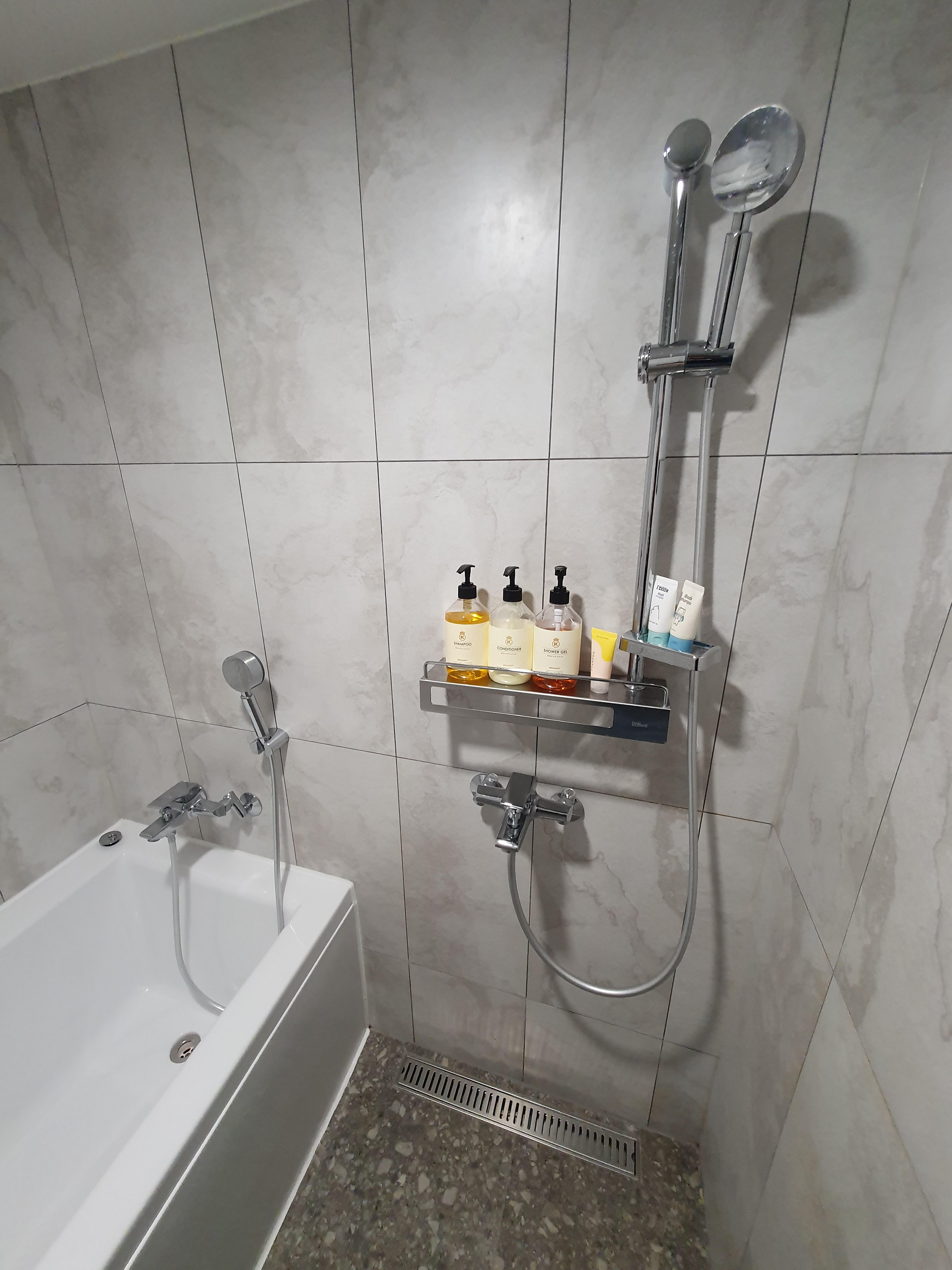 우선 세면대와 변기가 바로 보이고, 안의 문을 열어야 샤워장과 바스텁이 보입니다.