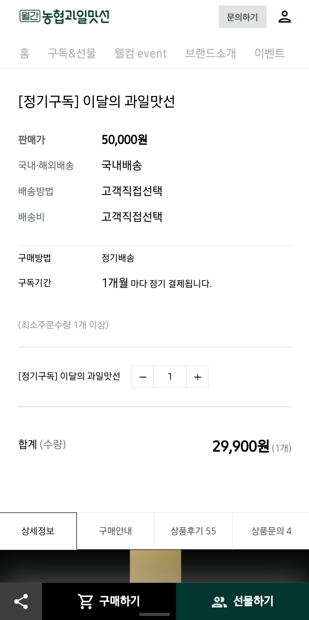 이상으로 농협 월간농협과일맛선 신청 후기를 마칩니다.