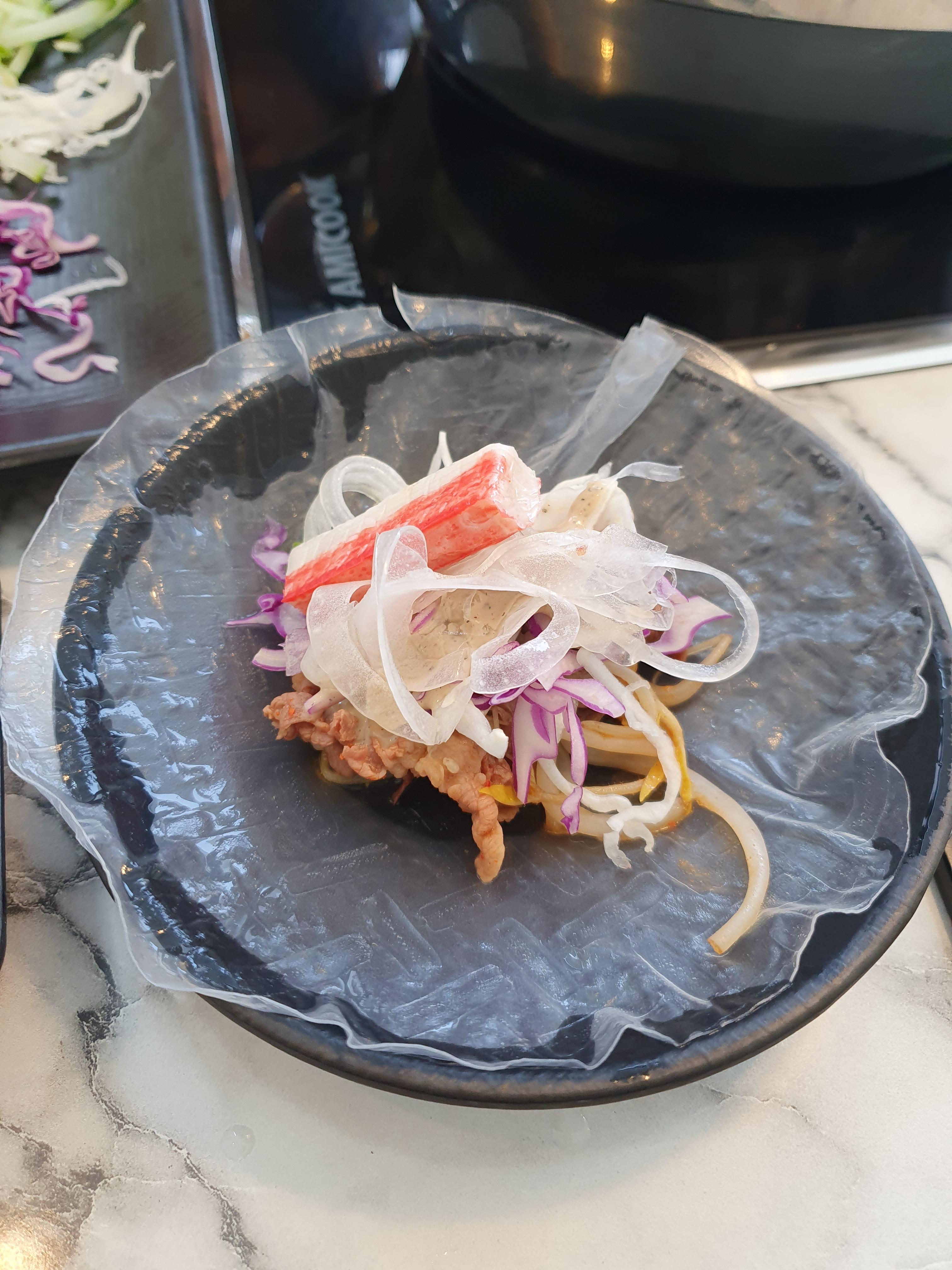 원하는 만큼 먹을수 있을만큼만 샤브샤브 재료를 떠가지고 옵니다.