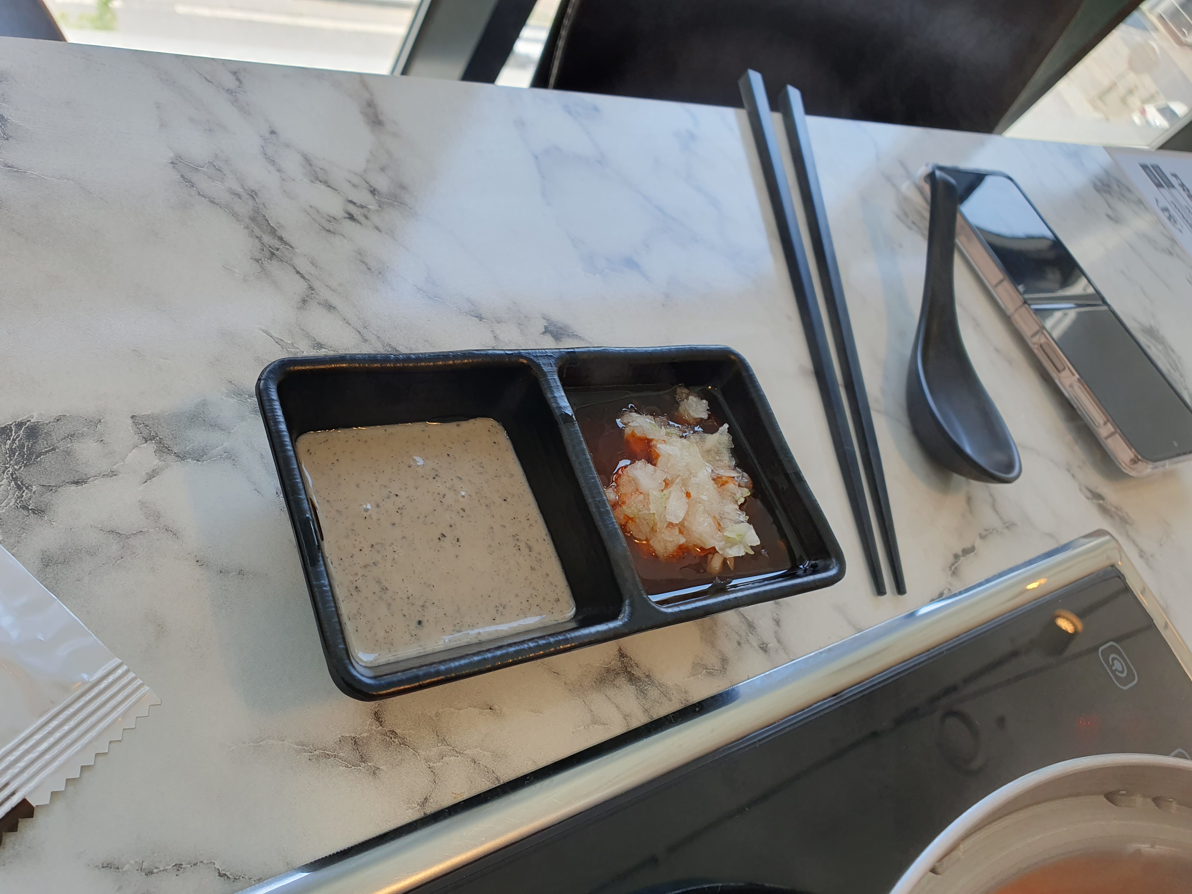 땅콩 소스 + 흑임자 소스랑 섞어서 먹으니깐, 개인적으론 제입에 딱 맞았습니다.