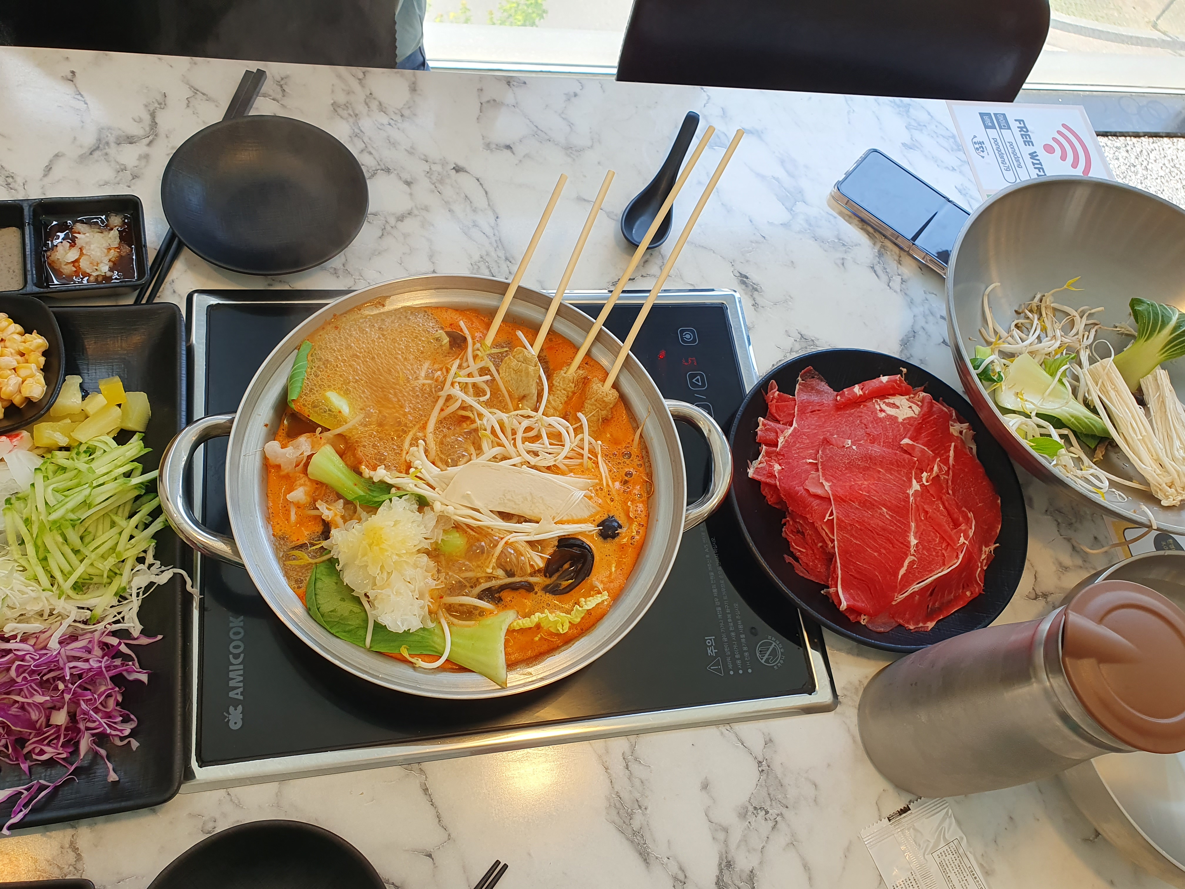 이제 보글보글 샤브샤브가 익고 있습니다.