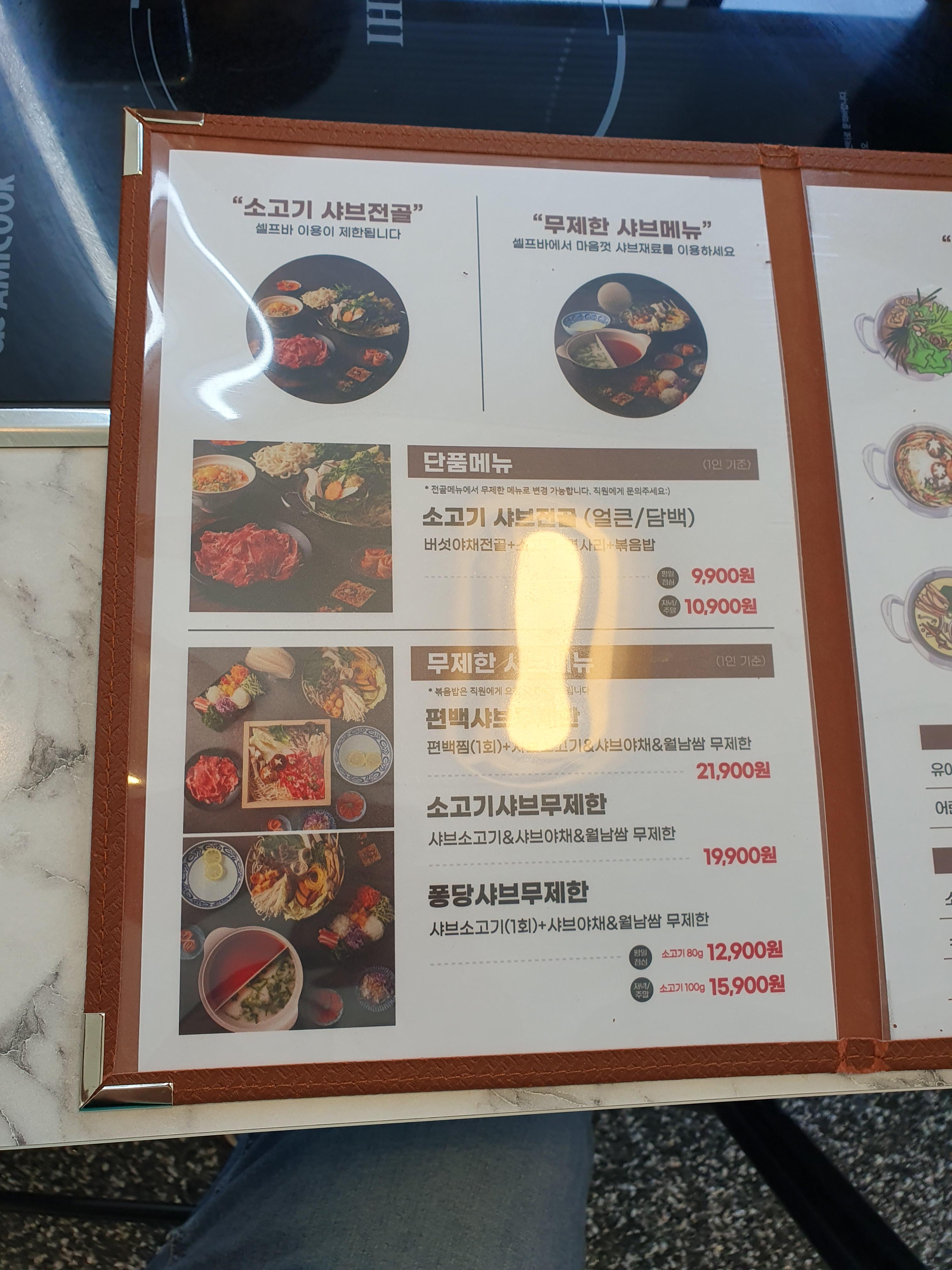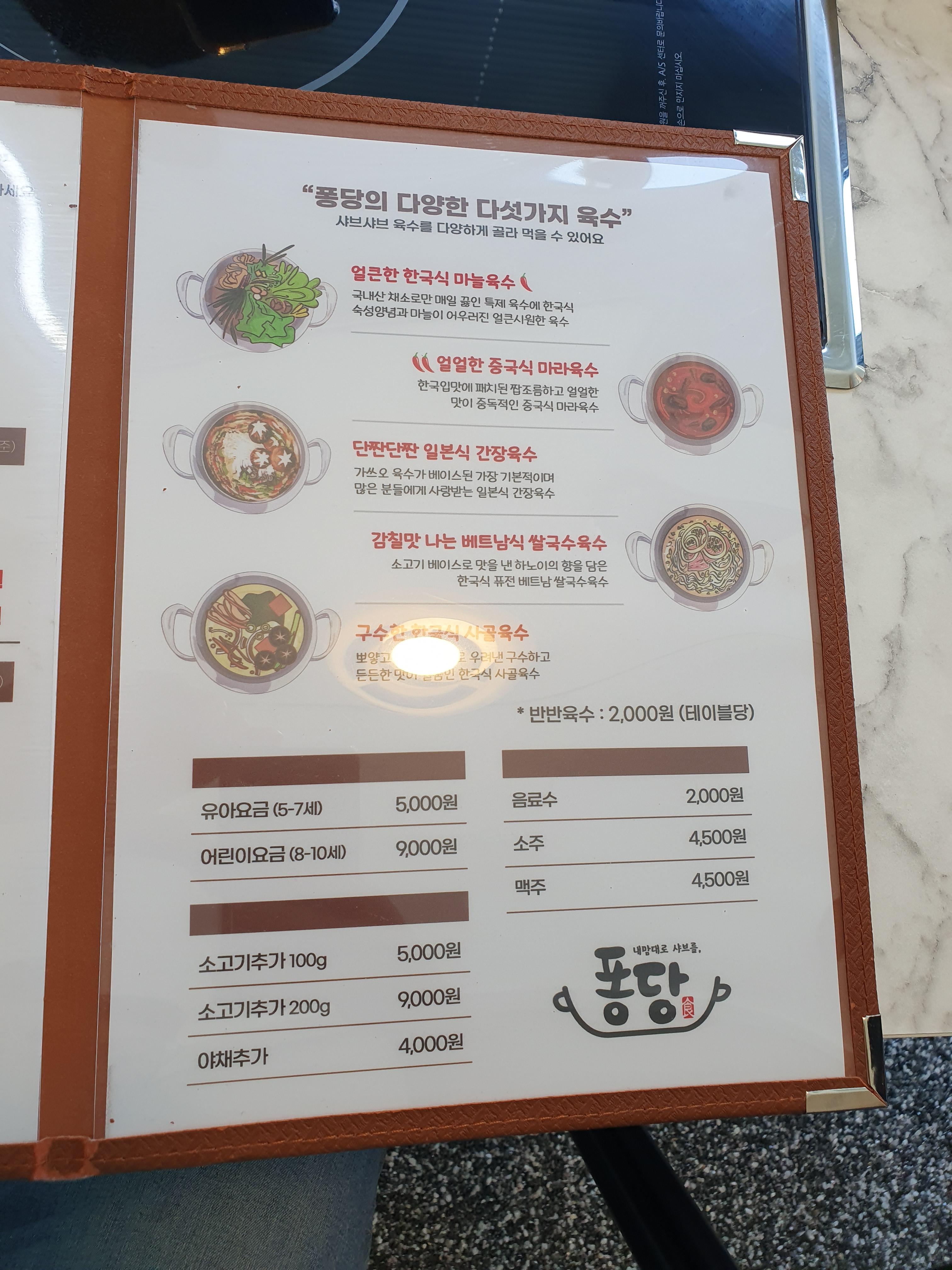 그럼 관저동 퐁당샤브 메뉴판을 보겠습니다.