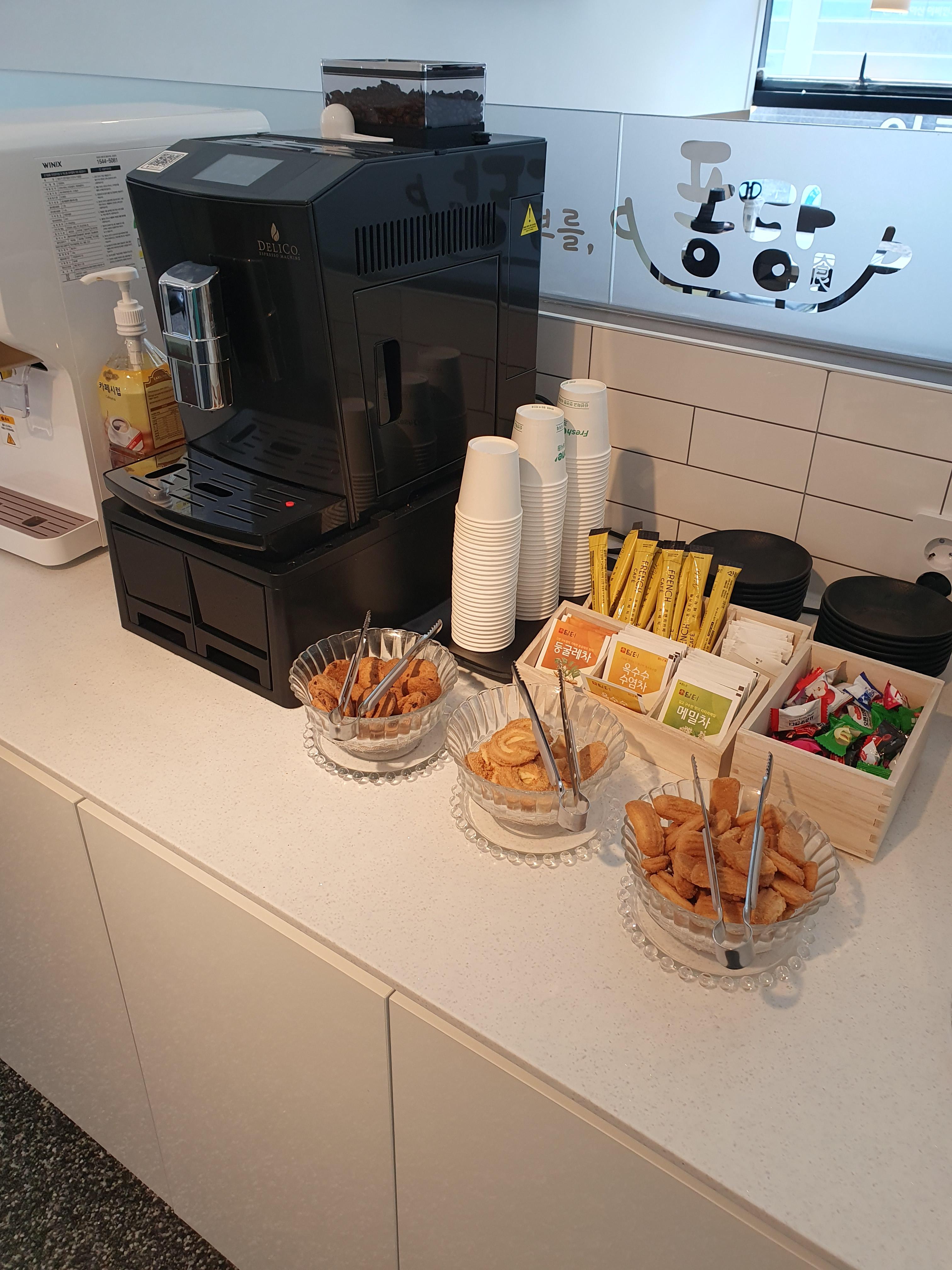 에스프레소 내려서 먹을수 있으며, 작은 쿠키가 몇종류 있습니다.