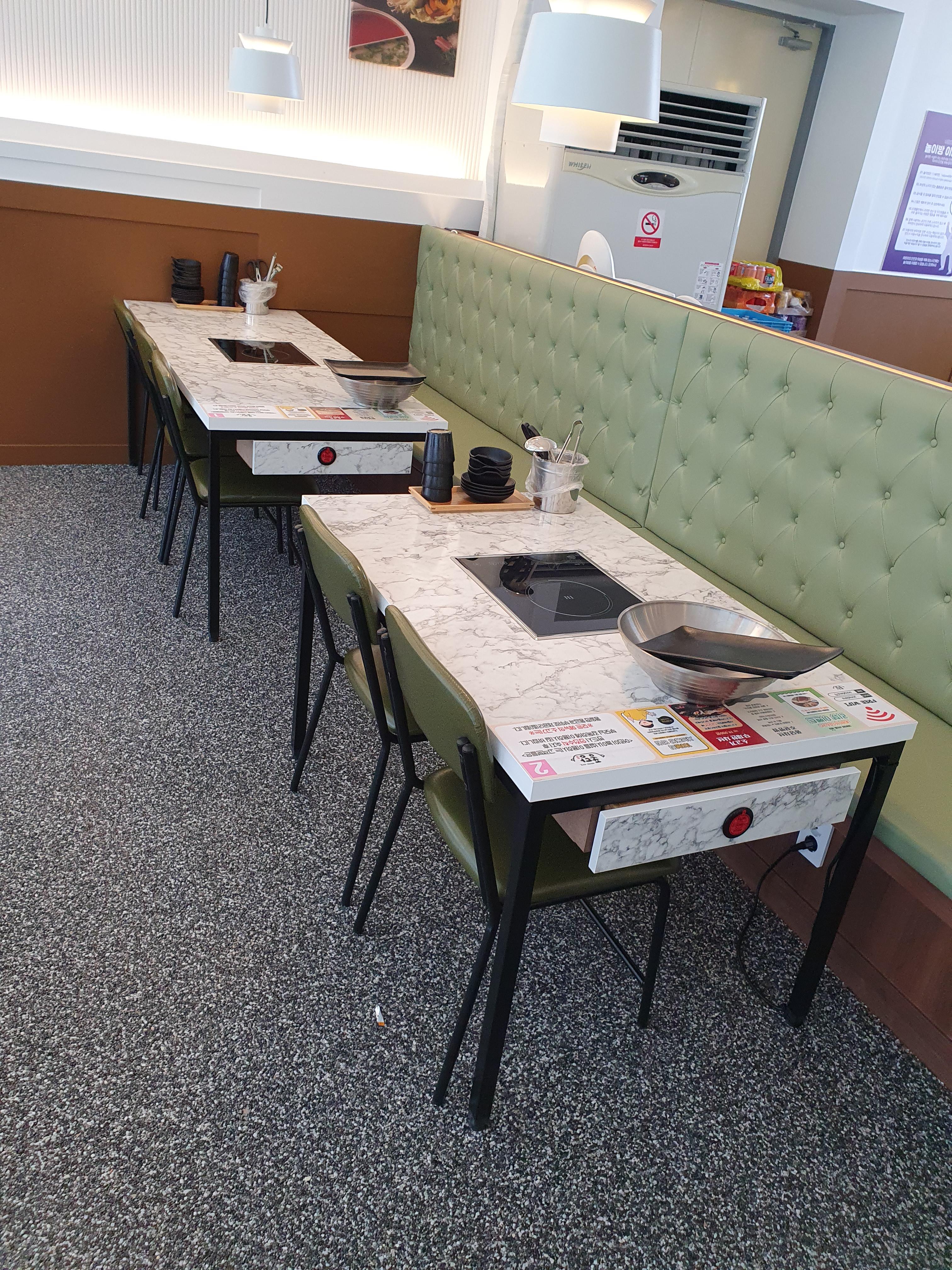 샤브샤브는 끓여 먹는 냄비를 테이블 마다 올려서 먹기때문에,,