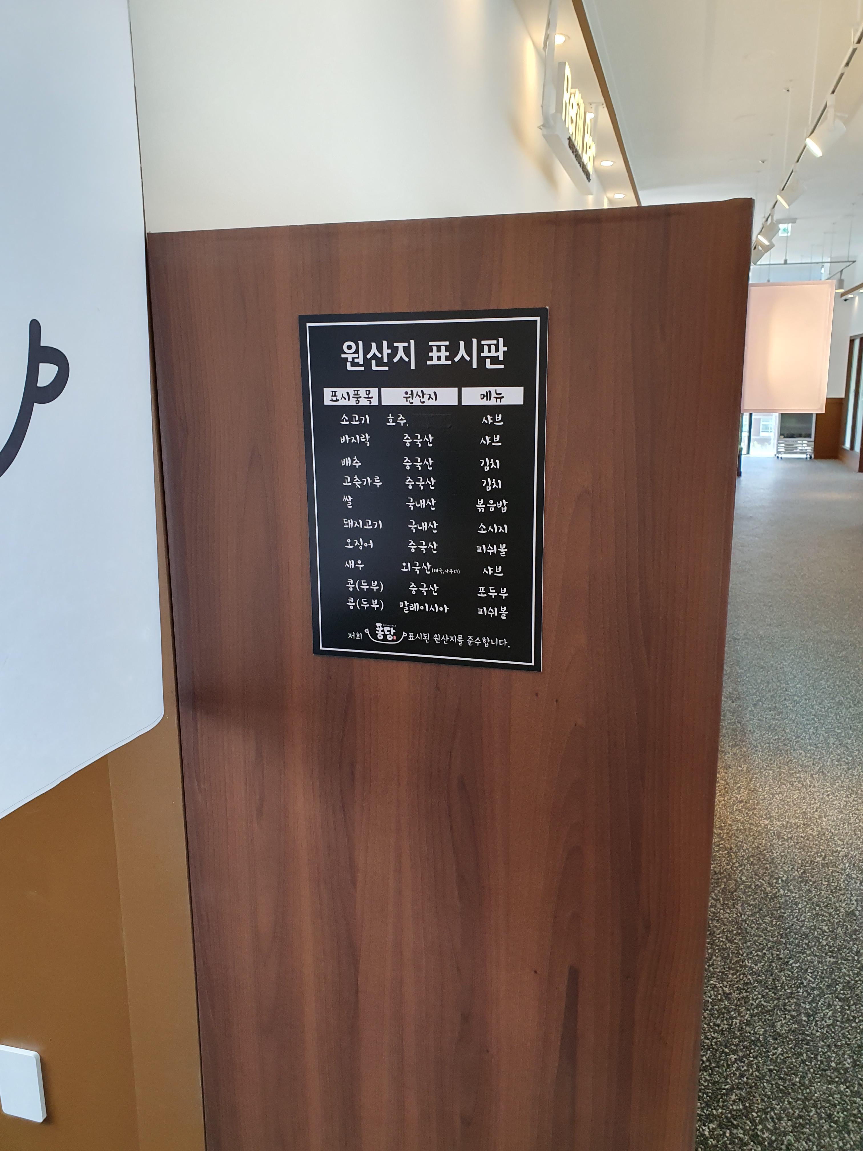 퐁당 샤브의 원산지는 아래 표시판을 보고 확이나세요.
