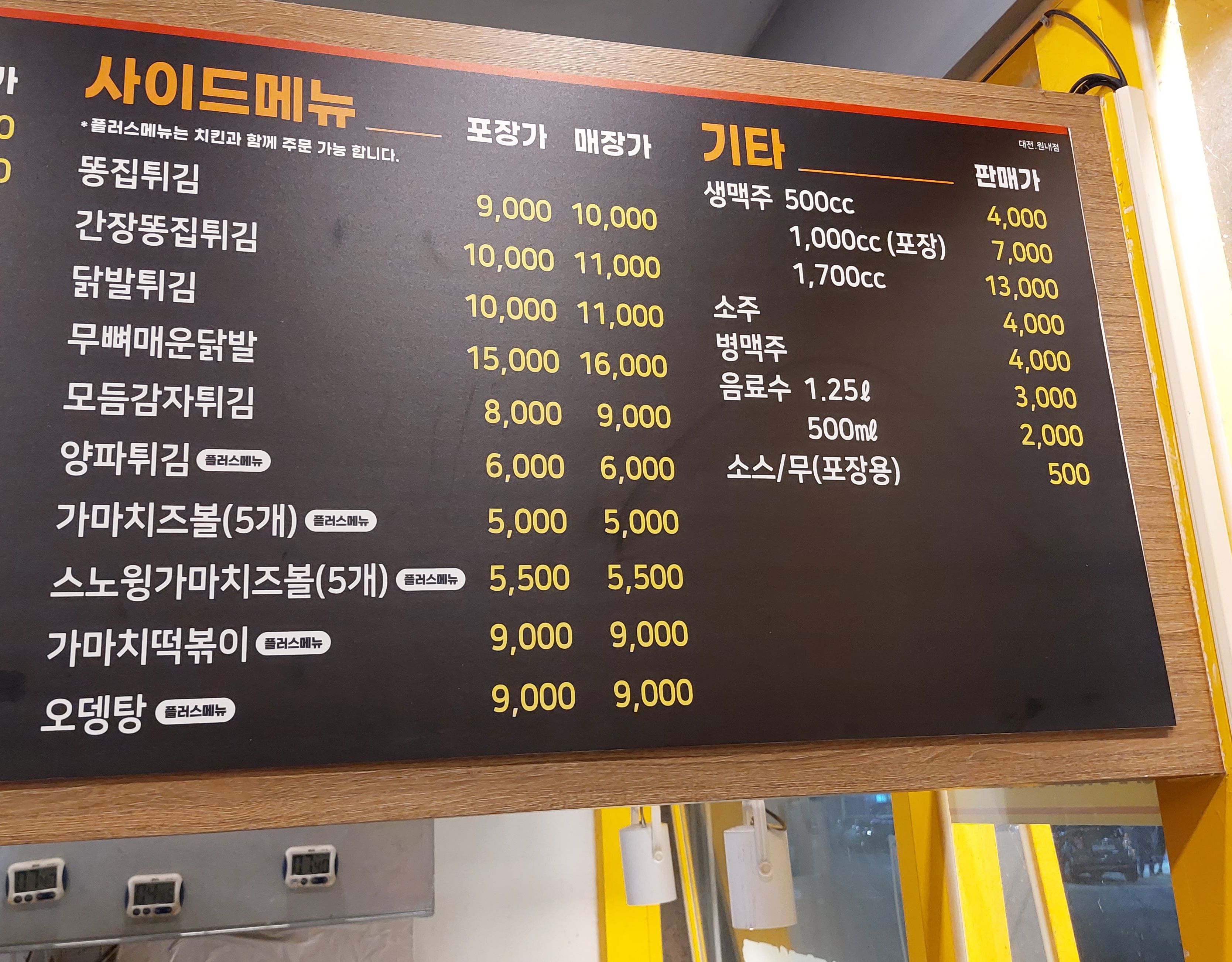 원내동 가마치통닭은 원래 시장통닭 1마리에 9천원에 판매중인데..