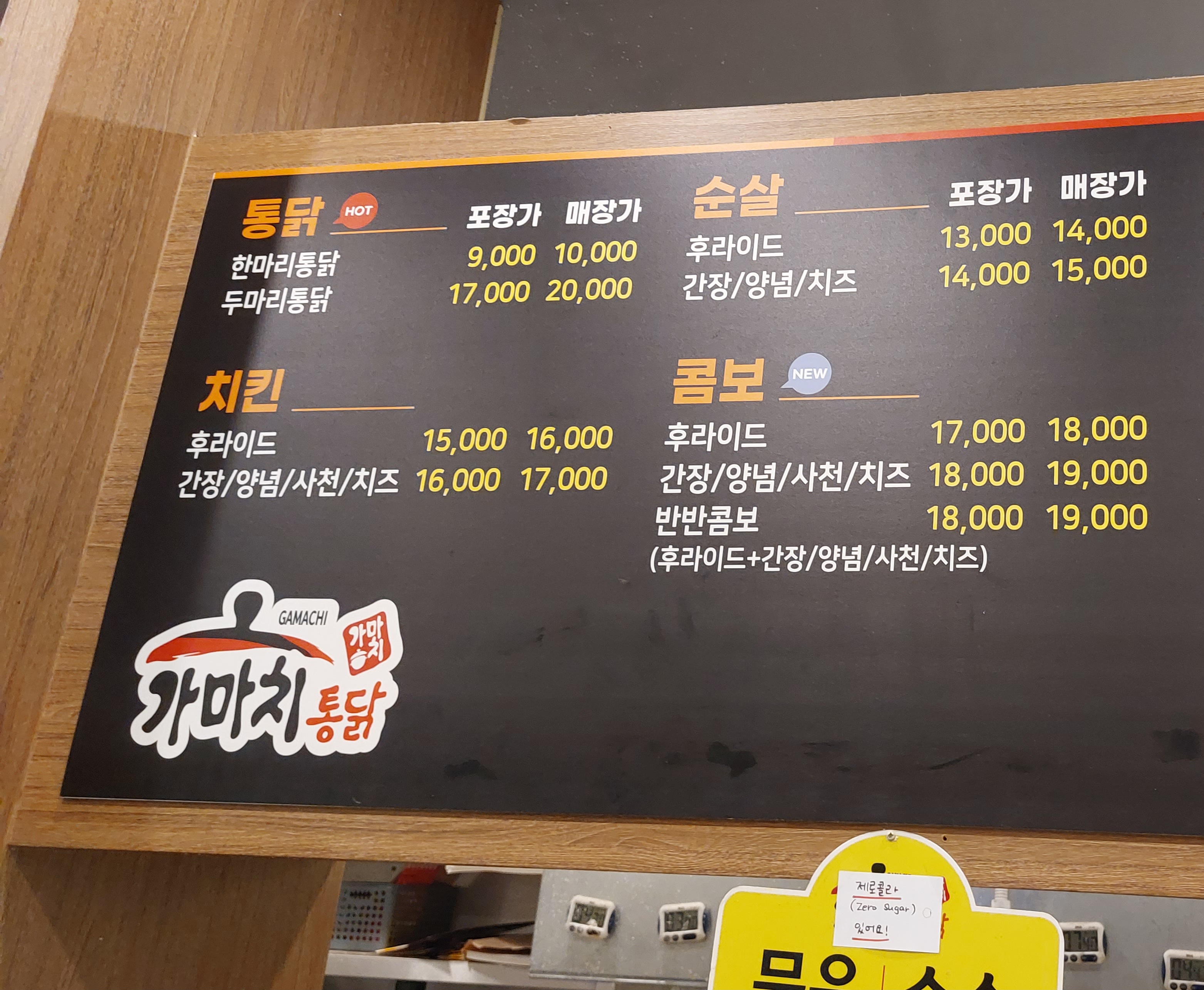가마치 통닭 메뉴판