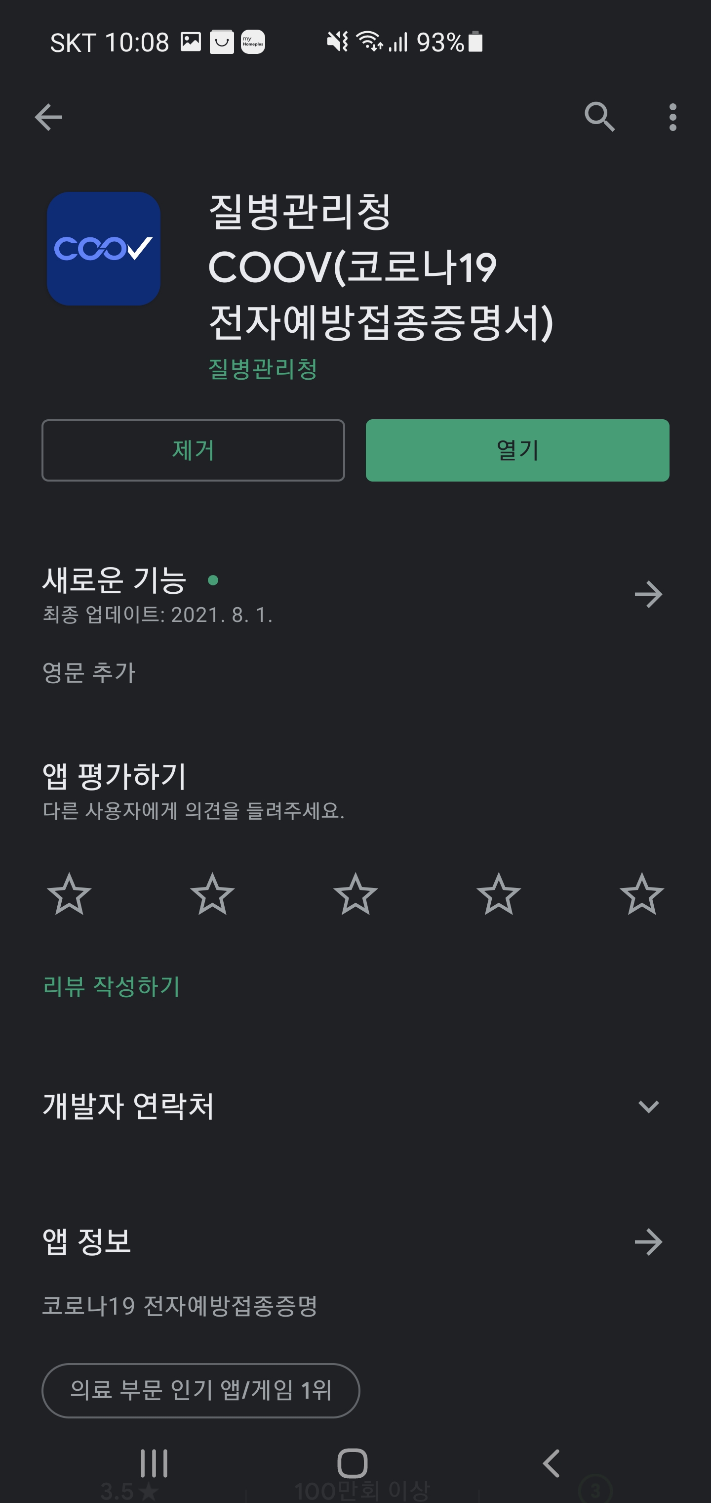 COOV 라는 어플을 이용해서 코로나 예방접종 증명서를 받을수 있더군요.